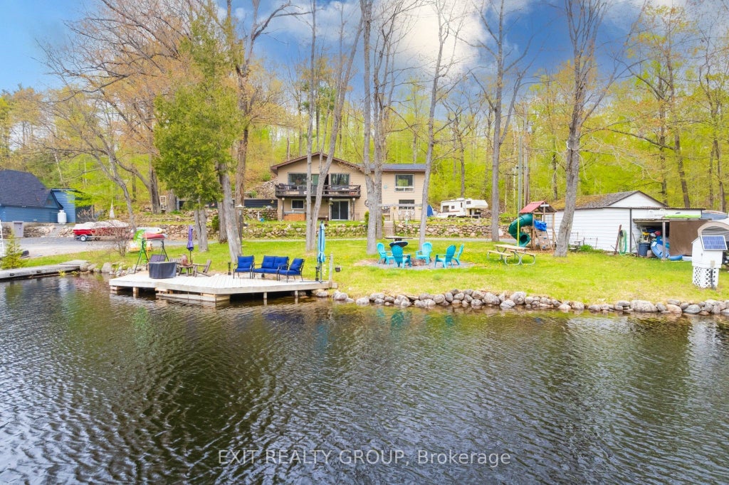 WATERFRONT ON LOWER MAZINAW LAKE! Don't miss out on this rare opportunity to own a slice of paradise in the Land O' Lakes region!  Welcome to your dream waterfront escape in Cloyne, Ontario - where serenity meets starlight. Nestled on over an acre of lush, tree-lined land, this enchanting four-bedroom, two-bathroom raised bungalow offers more than 170 feet of pristine water frontage along the tranquil Lower Mazinaw Lake. By day, gaze out from your kitchen at shimmering waters that stretch up the 14km long river. By night, step outside to be wrapped in the wonder of clear, northern skies-where the stars spill endlessly above you, mirrored softly in the still Lake below. Enjoy peaceful privacy on a property that fronts onto Wellman Road and backs onto the secluded calm of Shabomeka Road. Launch your next adventure right from your private boat launch with a mix sandy base, or take a short, magical 10-minute boat ride to the breathtaking Bon Echo Cliffs - towering walls of stone that glow in the golden light of sunset. Smarts Marina is less than a minute from your dock. This four-season haven is located on a municipally maintained, year-round public road with school bus service, making it ideal for both full-time living and weekend escapes. The walkout basement offers in-law suite potential or a cozy guest retreat for nights when the stars beckon visitors to stay just a little longer. Whether you're seeking a family getaway, an investment opportunity, or a forever home in the heart of Ontario's Land O' Lakes region, this is more than a property - it's a piece of paradise wrapped in water, wilderness, and wonder. Let your story unfold beneath a canopy of stars, where the magic of waterfront living begins.