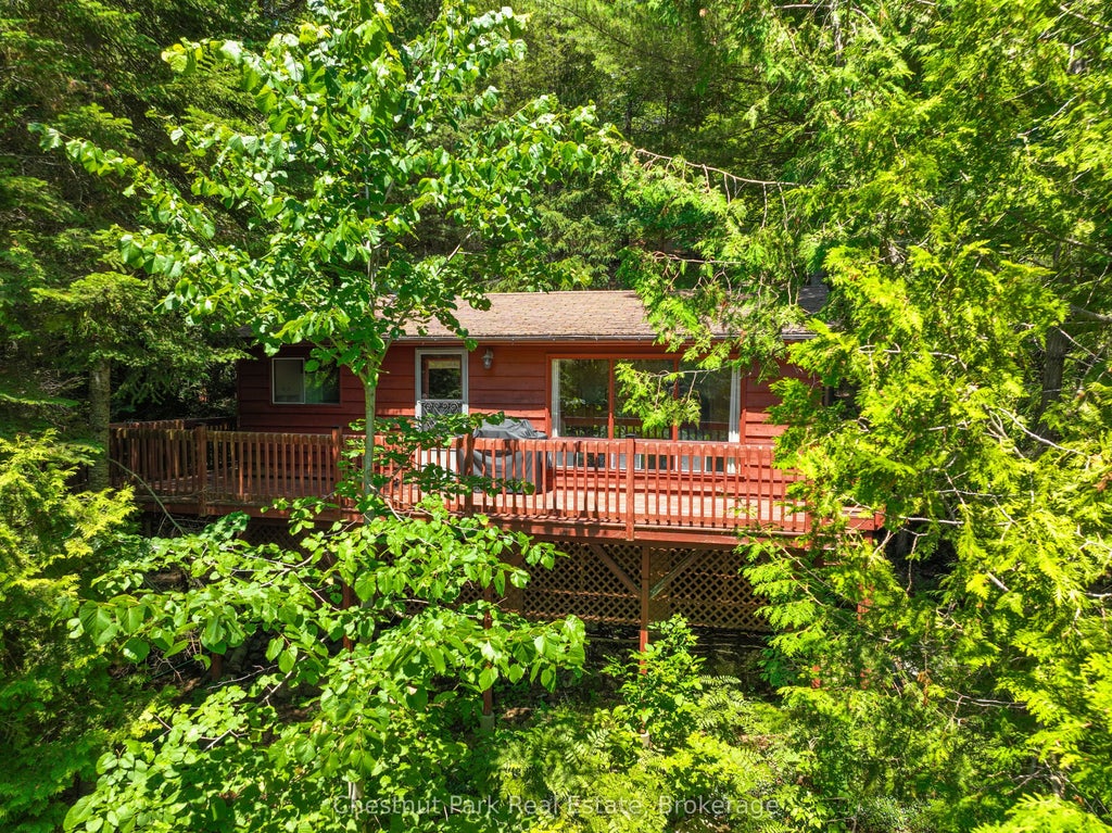 Remember going to the cottage as a kid? 10 - 1054 Deewood Drive encompasses all the nostalgia of summers in Muskoka gone by. Down the shared laneway is your grandparent's cottage nestled among the trees. You jump out, tear down the wooden steps, drop everything to get into your swimsuit and cannon ball right off the dock without a second thought. This three bedroom, one bathroom open concept cottage is just the right size for your family to grow up at. Walk out to your expansive wrap around deck facing Three Mile Lake and listen as the boats go by. The sounds of summer! There is a bunkie down by the water for dry storage or sleeping teenagers. Fire pit and dock await by the hard packed, sandy, waters edge. Up the stairs is another shed and then garage at the top of the driveway. Across the lane way is another 1/2 acre parcel with 109' of road frontage on Deewood Dr. that is being sold together with this waterfront cottage. Build your dream cottage and private driveway there and keep this cottage as a bonus space for guests! See survey image for Parts 43 & 11. Buyer to put a septic system in. This cottage has a composting toilet and grey water system.