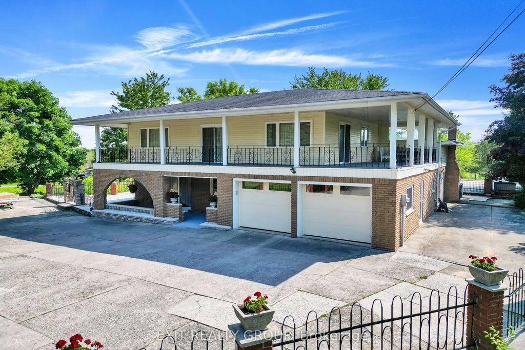 Wonderful 1.53 acre retreat to call home backing on to the Trent River! Fabulous 4 bed, 2 bath, 2 storey located minutes to the highway 401, all amenities, beaches, boutiques, restaurants, YMCA, schools, skate parks, arenas, splash pad, churches & trails. Features double car garage, interior garage access, main floor laundry, pool, fountain, oversized shed, wrap-around balcony, perfectly landscaped with iron rail fencing and breathtaking views. A bright kitchen with skylight, backsplash, pantry, and breakfast area. Formal living room has French doors and wood burning fireplace with fan and thermostat. Great for heating the house. Dining room has oversized sliding doors leading into the screened in sunroom. Fabulous family room overlooking the pool with a stunning stone propane fireplace. This could be converted to a primary suite if needed and this second fireplace makes heating the home very economical. Upper level has 4 generous sized bedrooms, one bedroom with a walkout to wrap around balcony. Large upper foyer with a second walkout to wrap around deck and a 4-piece bath with tiled tub and separate shower. Shingles 2022, newer windows, central vac, UV system, and many upgrades throughout the years. Enjoy swimming in the pool, relaxing on multiple patios, or taking a stroll on your own private oasis with the extra benefits of fishing, kayaking, canoeing or simply relaxing on the water right at the back of your property. Waterfront amenities without the waterfront taxes. Optional hook up available for municipal water available at the lot line.