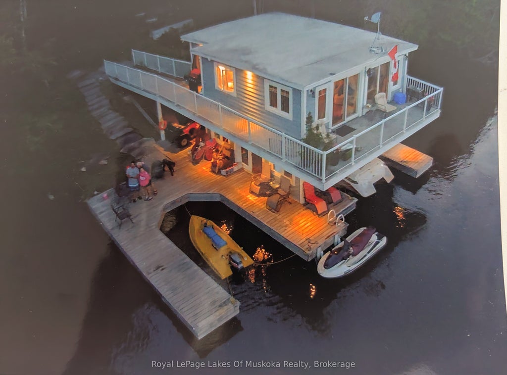 Lake of Bays Fractional Cottage Retreat 2/7 Ownership. Here's your chance to own 2/7 shares of a charming Lake of Bays cottage compound, located at the end of White Pines Road off South Portage a quiet, private setting just minutes from Dwight, Huntsville, and world-famous Algonquin Park. The main cottage features 2 bedrooms, 1 full bath, and has been comfortably used in the winter months. A spacious front deck offers sweeping views of the lake and the boathouse below perfect for relaxing or entertaining. The boathouse is a true bonus, complete with 2 additional bedrooms, a full kitchen, and a 4-piece bath. Below, you'll find a large interior boat slip, plus a second open slip and generous docking space for all your water toys. Children will love the shallow, sandy beach and open lawn ideal for safe play and family fun. The peaceful end-of-road location ensures privacy while still being close to everything Muskoka offers, from summer golf to winter skiing. A beautiful, low-maintenance way to enjoy all the perks of Lake of Bays cottage life.