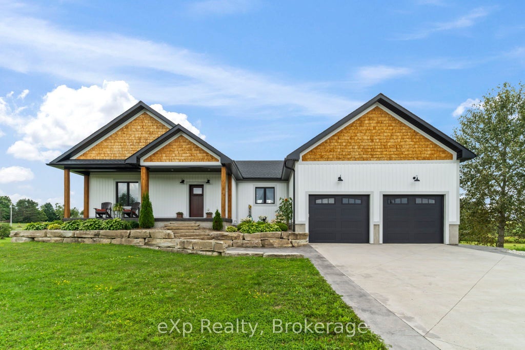 Discover refined country living in this beautifully built ICF bungalow, completed in 2020 and tastefully updated for todays lifestyle. Offering 3,600 sq. ft. of total living space, this home makes an impression from the start with its stamped concrete front porch and concrete driveway with decorative border.Inside, the main level was refreshed in 2023 with new flooring and paint, and features a showstopper kitchen complete with quartz countertops and a stylish new backsplash. The great room boasts floor-to-ceiling west-facing windows that flood the space with natural light.The primary suite includes a spacious walk-in closet and a spa-inspired ensuite bath. Two more main floor bedrooms are served by a fully updated 4-piece bathroom. Step into the bright 3-season sunroom or head downstairs to a fully finished walk-out basement, where youll find in-floor heating, a large rec room (with rough-in for a wet bar), two more bedrooms, and another full bath.Enjoy the peaceful 2.4-acre setting from the lower concrete patio or take advantage of the oversized garage with 11 ceilingsideal for storage or hobbies. Thoughtful upgrades throughout make this home a perfect blend of quality craftsmanship, comfort, and style.