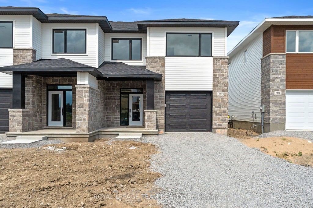 This newly built semi-detached home in Stirling Meadows, Brockville, offers a stylish and functional design with convenient access to Highway 401 and nearby shopping. The Stratford model by Mackie Homes presents approximately 2,095 square feet of thoughtfully designed living space. The bright, open-concept layout includes three bedrooms, three bathrooms, and an oversized single-car garage. A contemporary two-toned kitchen serves as the heart of the home, featuring a centre island, quartz countertops, a fridge, stove, hood fan, and dishwasher. A pantry and an office nook add both practicality and flexibility. The living room features a tray ceiling and flows effortlessly into the adjacent dining room. From here, sliding doors lead to the sun deck and backyard, creating a seamless connection between indoor and outdoor spaces. Upstairs, the primary bedroom offers a walk-in closet and a five-piece ensuite with a freestanding bathtub, separate shower, and a dual-sink vanity. Two additional bedrooms, a full bathroom, and a laundry room complete the second level.
