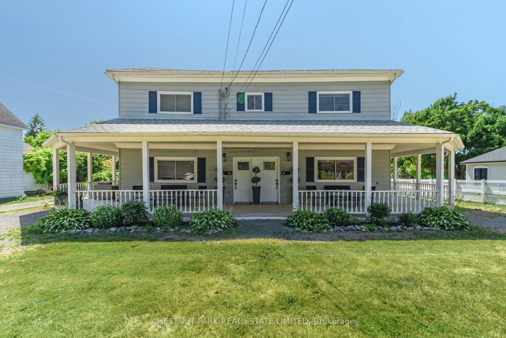 Set along one of Wellingtons most desirable streets, this circa 1840s duplex is a distinctive proposition in the neighbourhood that offers a rare blend of versatility, design, and location in Prince Edward County. Anchored by a deep lot that stretches toward a canopy of green with west facing horizon, the opportunity comprises two self-contained residences, each with their own private driveway and entrances, contemporary finishes, and bright, open interiors tailored for modern-country living. Extensively renovated in 2020, the home features new plumbing, updated electrical panels, flooring throughout, appliances, and new hot water tanks. Additional upgrades include a new roof and, furnace and air conditioning, ensuring comfort. The north side of the abode features a stylish two-bedroom, two-bathroom unit, currently operating as a licensed STA, ideal for generating income through short-term. The other, a well-appointed three-bedroom, two-bathroom suite on the south side, lends itself beautifully to full-time living, extended family, or long term rental investment potential. Both units offer well equipped kitchens, clean-lined bathrooms, and seamless flow to expansive covered wrap around porches made for slow mornings and relaxed evenings. Outside, the oversized yard invites gathering and solitude alike, with ample space for recreation or quiet retreat beneath mature trees. Lots of room to expand with some vision and make it an epic backyard oasis. From this prized location, stroll by foot or bike to Wellingtons celebrated eateries, markets, and galleries, while the Millennium Trail and beach remain only minutes away, offering an effortless connection to everything the Countys Lifestyle is loved for. Whether you're envisioning multi-generational living, co-ownership, or a smart income-producing escape, this property represents a rare opportunity to be creative, live beautifully and intentionally, in a place where every path leads to something extraordinary.