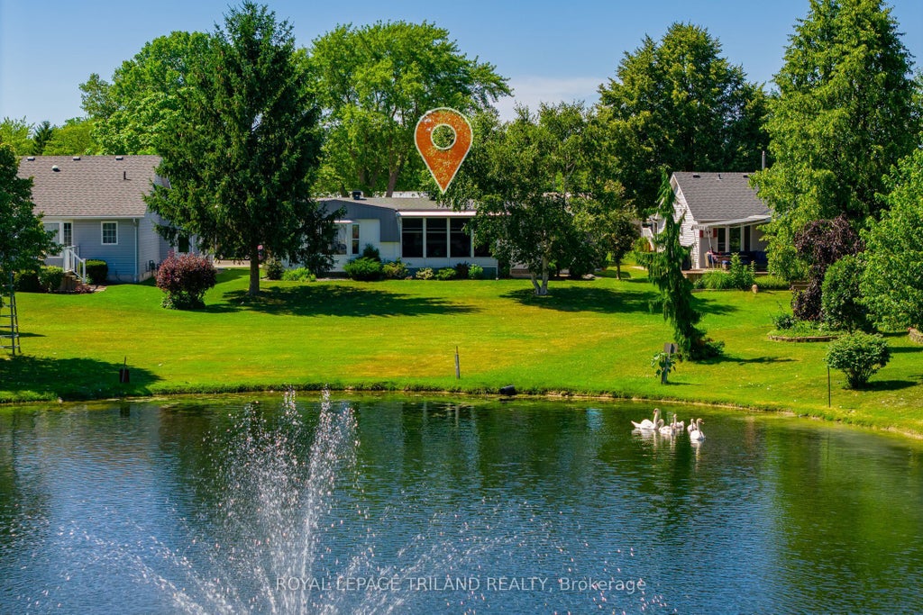WATERFRONT SITE BUILT BUNGALOW IN GRAND COVE/GRAND BEND! The phrase location location location has never been more appropriate! If you're shopping Grand Cove; GB's favorite & most exclusive land lease community jam packed w/ fantastic amenities; come see this young site built bungalow fronting the sparkling shores of the Grand Cove nature pond! One of very few waterfront homes in The Cove rarely available for sale, this one never even made it to the market when it sold to the current owners, whom have updated & cared for it meticulously. On a significantly larger lot than the majority of Grand Cove parcels & w/ wildlife & sunrise waterfront views from the east side of home, this 2 bedroom + sunroom & family room + 2 FULL bathroom 1547 SQ FT charmer is in a category all on its own in this neighborhood! The generous size & smart layout of this 4 season bungalow offer a roomy & bright entry foyer, an open-concept living/dining area w/ gas fireplace beside the recently updated & spacious kitchen w/ gas stove + hood vent & w/ all appliances included, a waterfront family room, & a 3 season waterfront sunroom or guest sleeper (often used 4 seasons w/ small heater). But wait, we're still not done! There are also 2 roomy bedrooms including a large master suite w/ walk-in closet & a full ensuite bath that includes main level laundry plus a 2nd bedroom & a 2nd bathroom, which is a 4 pc w/ a seamless tub/shower insert. The ultra efficient & pricey gas fueled heat pump/AC combo unit was just installed in 2020 & the owned hot water heater was installed new in 2019. A variety of other recent updates include the 2018 roof, paint, cork floors in bath/other flooring in home + new counters in 2nd bath, & the washer & dryer, which are also included! With the 200 amp electrical service, windows done by previous owner in the early 2000s, & the proper vapor barriered & insulated crawl space on a full concrete foundation, this one has it all! Modest $850/month land lease fees apply.