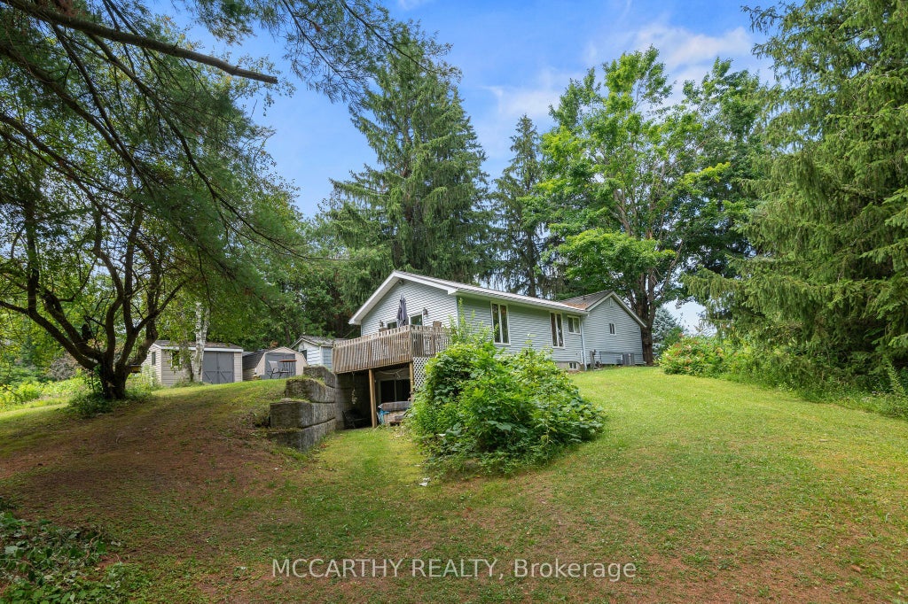 Spring Water Lakes, is a community to live in, recreate or just plane enjoy the quiet and Nature. You are nestled in almost one acre lot with trees and stream. This property is sharing access to beautiful ponds, to fish or swim. (No motorized boats) Country living in beautiful Mulmur. This is a 3 bedroom one bath bungalow. With a cathedral ceiling Living room with large windows all around. The great feature is that the lower level is a walk out. The décor is vintage and waiting for your flair and upgrades. The kitchen and dining room have a large picture window out the front. Plenty of natural light in this house. Entry from nice deck entrance and also a deck at the back over the walk out. Patio from the lower level, plenty of spots to sit and enjoy the peace and quiet and listen to the birds and watch the wildlife. Well loved home with much potential to be a grand home once again. Detached garage for a workshop or Man cave. Vehicle tent to store your car. Garden shed. Flat lot with mature trees, nice lawn and stream with two bridges over for your walks to the back of the property With walkouts to the wrap around deck to enjoy breakfast in the morning sun. Retreat to the comfort of the master suite, where wide plank wood floors invite warmth into the room. Lower level walk out has laundry room as well as a self-contained in-law suite with open kitchen/living room, bright bedroom and 3-piece bathroom with glass shower. Home owner association maintains the private road and access to the ponds, Great opportunity ofr nature lovers and those looking for a quiet and private setting in a friendly community. Easy commute and Conveniently located close to the Bruce Trail, Mansfield Ski Club, Mad River Golf Club, Creemore and Shelburne while just 40 minutes to Collingwood/Blue Mountains. Come and see the beauty that is waiting to be your next home.