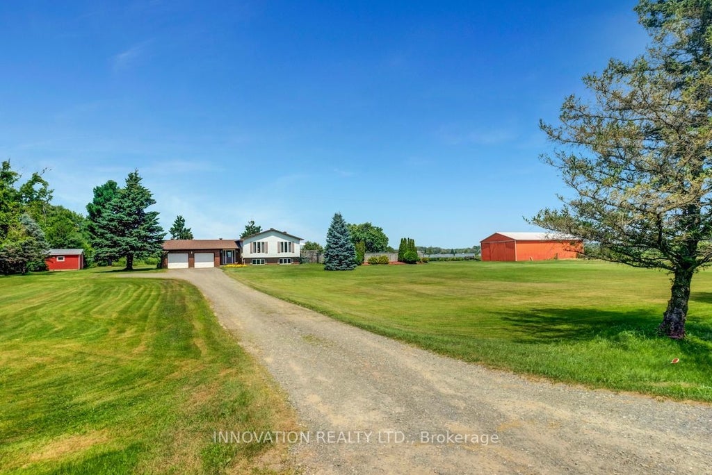 Welcome to this one-owner, custom-built raised brick bungalow, offering over 3,100 square feet of living space, perfectly situated on 6.5 acres of landscaped grounds w/mature trees, gardens & manicured lawns. Built in 1985 w/exceptional craftsmanship, this home is constructed w/solid floor joists on 12" centers, ensuring lasting durability. A spacious foyer w/dual closets & convenient half bath provide direct access to the backyard & oversized, insulated, heated double garage (23' x 22'). Upstairs, a bright open-concept living & dining room features vaulted ceilings & skylight that fills the space w/natural light. The large eat-in kitchen offers solid oak cabinetry & opens to a deck overlooking the expansive backyard. Three generously sized bedrooms & full 4-piece bath w/separate toilet & tub area complete this level. The lower level is designed for flexibility, w/fourth bedroom, extra-large family room, & dedicated laundry/storage area. Outdoors, enjoy summer in the fully fenced 18' x 36' in-ground pool, renovated in 23 & surrounded by an interlock patio. A massive 30' x 60' outbuilding w/its own driveway provides endless possibilities for contractors, hobbyists, or a home-based business, bonus additional 12' x 14' storage shed. A major highlight of this property is its solar panel system under the Ontario Hydro MicroFIT program, generating approximately $1,000 per month w/about 5 years remaining on the transferable contract (Buyer to confirm). Average hydro costs of just $250/month, the solar income significantly offsets household expenses making this not only a home, but also an exceptional investment opportunity. Recent updates include shingles (23), skylight (20), furnace & heat pump (24), as well as fresh paint, new laminate flooring in the main living areas (24). Located just 5 minutes south of Kemptville w/quick access to Highway 416, this property offers the perfect blend of peaceful country living, modern efficiency, & convenient city access.