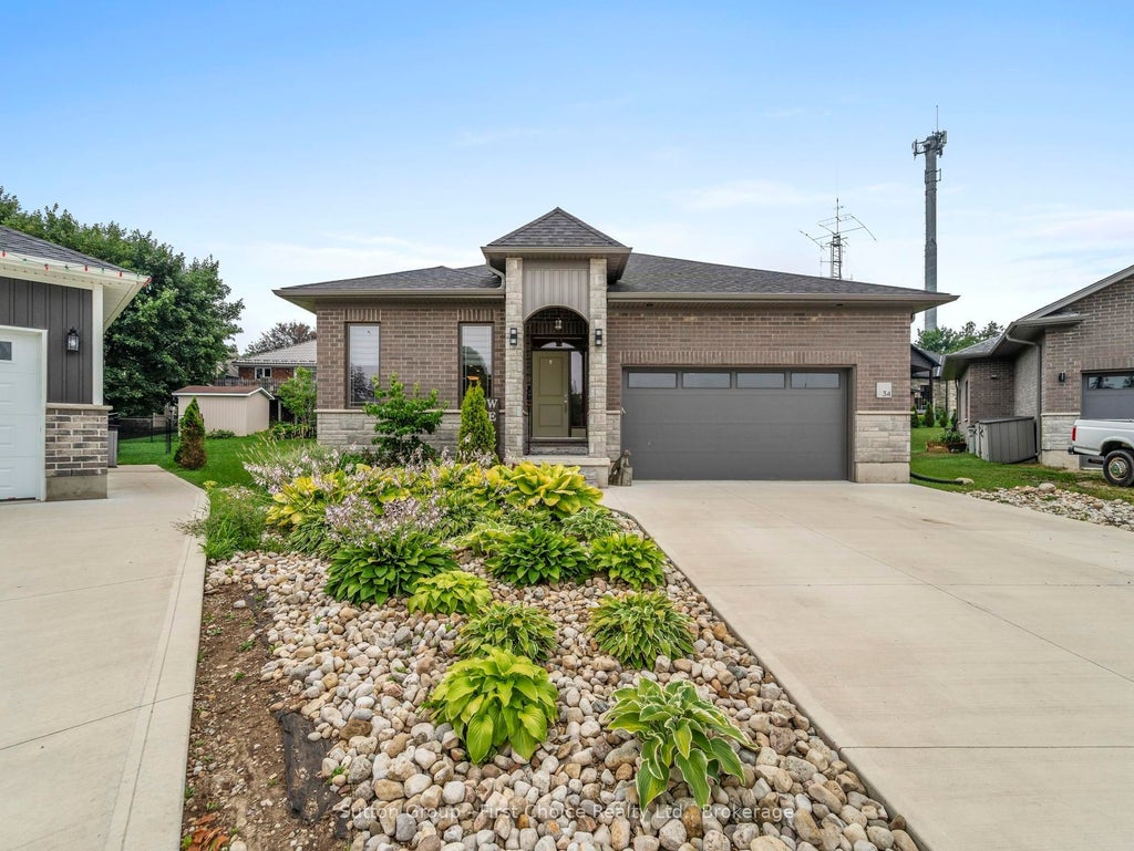 Stunning custom built home on a quiet cul-de-sac. Built in 2021, this beautifully designed brick and stone home offers timeless curb appeal and upgraded features throughout. Located just steps away from the library, park and fire hall, this property is ideal for families or anyone seeking a quiet yet connected lifestyle. Step inside to an open-concept layout with high ceilings, a cozy gas fireplace in the living room and bright dining area. The spacious kitchen includes stainless steel appliances, a peninsula with seating and ample storage- perfect for everyday living and entertaining. A convenient half bath serves guests, while the main floor also has a large primary bedroom with patio doors to the impressive 12' x 40' back deck, a walk in closet and a private 3 piece ensuite. Main floor laundry adds practicality to your daily routine. The fully finished basement offers even more living space with a generous rec room, an additional bedroom, a 4 piece bathroom and a bonus room ideal for a home office or potential 3rd bedroom. Enjoy the convenience of a heater double car garage, a concrete driveway and low maintenance landscaping. This move-in-ready home checks all the boxes, don't miss out!