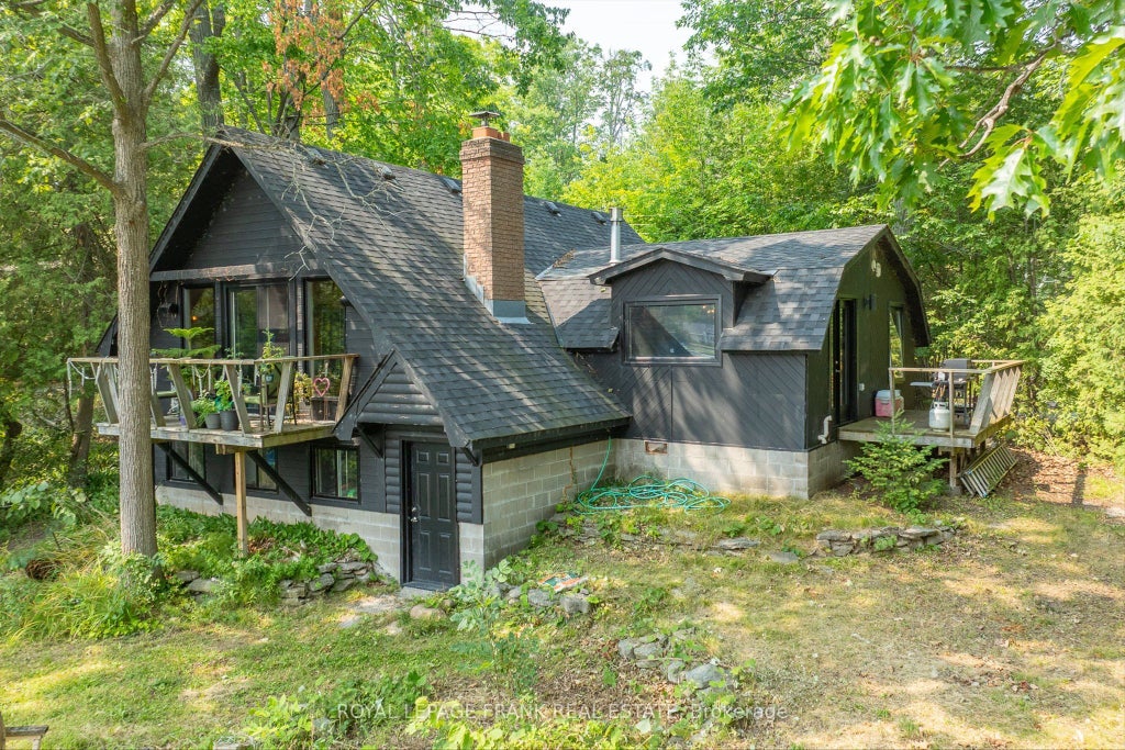 Looking for a quaint and eclectic getaway retreat from the crazy city? This is it! Four season, 2+1 bedroom chalet style home/cottage on 300 feet of waterfront in desirable Buckhorn on the Trent Severn Waterway. Newer chefs kitchen with unique island, newer bathroom with walk in shower, forced air propane furnace, wood burning airtight fireplace, woodstove and propane fireplace. Newer roof, doors, windows, electrical and insulation. Walk out basement to the waterfront for your kayaks and canoes and watching the wildlife. Quench your creative side in the waterside four season studio/bunkie with heat pump. Easy access off a township maintained paved road. 10 minutes to Buckhorn for all amenities and 25 minutes to Peterborough