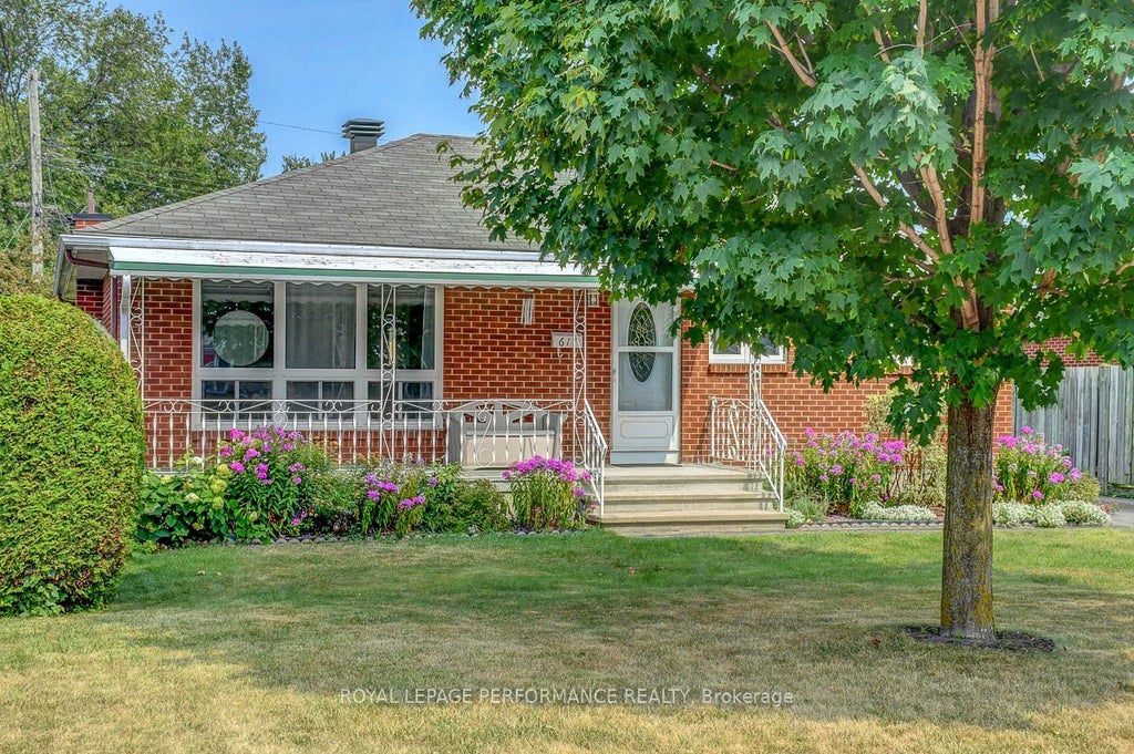 What's not to love about this immaculately maintained full-brick 3+1 bedroom bungalow on a quiet tree lined street in the tight knit community of Castle Heights, which has been meticulously cared-for by the same owner for the last 65 years! Warm and inviting front walkway leads to lovely covered front porch. Bright and airy open-concept main living area with hardwood floors, picturesque front window, and beautiful sight-lines. Renovated eat-in kitchen with timeless cabinetry, and sink underneath large window overlooking front garden. Spacious primary bedroom with ample closet space. Two additional well-proportioned bedrooms. Updated main floor bathroom with newer vanity, soaker, tub, and tiled walls. Convenient side-door which has direct access to basement from the outdoors, unusually high 8ft ceilings, large secondary living space with charming wood panelling, fourth bedroom, spacious laundry room, and tons of room for all of your storage needs. Ideal configuration to add an in-law suite or secondary dwelling unit. Fenced backyard with lovely perennial garden, stone patio, and convenient storage shed. Tons of parking with private driveway. Owned Hot Water Tank. Central Air-Conditioning. Furnace 2014. All vinyl windows. Extremely convenient location with tons of retail options - Farm Boy, Adonis, Independent Grocer, Shoppers Drug Mart, LCBO, and St Laurent Shopping Centre. Easy access to public transit with multiple bus route near-by and LRT station. Dare to compare this meticulously maintained home which has a timeless design, so much pride of ownership, a super convenient location, and the highly coveted post-war quality workmanship. Quick closing available. 24h irrevocable on all offers.