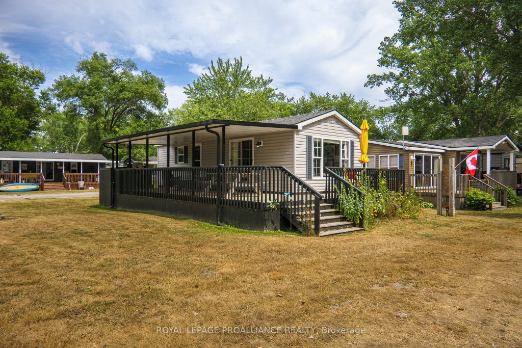 ***This Mobile unit is located on a Seasonal land lease resort***--Purchase price not subject to HST--This extra wide 2013 unit shines through! With upgraded blinds and expansive windows, natural light creates an inviting space all day long! Enjoy water views without the water front fees The primary bedroom features a large walk-in closet. The second bedroom is perfect for kids, thanks to the bunkbed for the ultimate cottage experience and childhood memories. Enjoy a standard size shower and tub combo in the bathroom! With a roof extension covering the generous wrap around deck and fleshly sanded wood boards, all required is your finishing touches and choice of patio furniture! Located 2 and 1/2 hours from Toronto and just under 4 hours from Montreal { yes there are lots of owners coming from both cities). The resort ( Cherry Beach Resort) is located minutes from Picton, Sandbanks, Base 31 and the Outlet river granting access to Lake Ontario. The resort is open from May 1st to October 31st. Annual fees of $11,140.00 + HST are payable in 2installments. 1st installment due on Nov 1st and 2nd Installment due on April Ist. Fees include the following (Lot occupation fee, water & sewer, lawn care, hydro, resort amenities like: Multi-Sport court, rec plex, heated pool, beach, splash pad, playground, events and more).