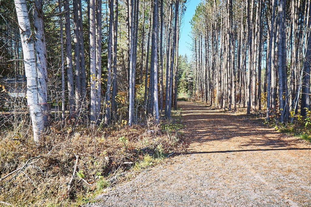 Lovely piece of land well-situated on the North end of Huntsville on a year-round road. Almost 7 acres of treed property with close access to highway 11 and only five minutes from downtown Huntsville, this would be a lovely setting to build a home. Mature trees make up the landscape and will offer great privacy to tuck yourself away and be surrounded by nature. Driveway is started, but will have to cross over the pipeline to get to the building site and hydro is at the lot line.
