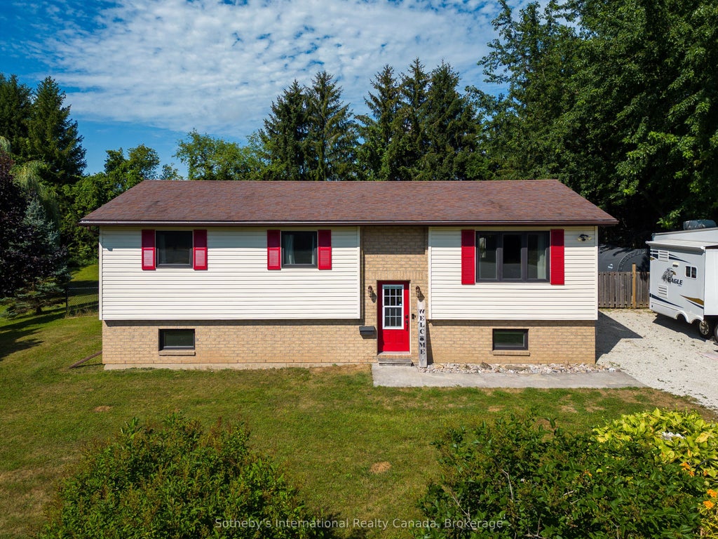 Welcome to this charming raised bungalow nestled on a highly sought-after, quiet cul-de-sac. Situated on a generous 0.5+ acre lot, this home offers exceptional privacy surrounded by mature trees your own private retreat just minutes from town. Step outside onto the expansive deck, perfect for entertaining or simply enjoying the serene, tree-lined setting. Step inside to discover a beautiful abundance of light, and an open interior featuring thoughtfully renovated rooms. The main floor boasts a spacious primary bedroom, two additional bedrooms, an open concept kitchen highlighted with quartz counter tops and a stylish shiplap feature wall that adds warmth and character. The lower level offers even more living space with an additional bedroom, a large rec room, an exercise room, and the potential for an in-law suite ideal for multigenerational living or guests. This is a rare opportunity to own a move-in ready home in a tranquil, family-friendly location with plenty of room to grow.