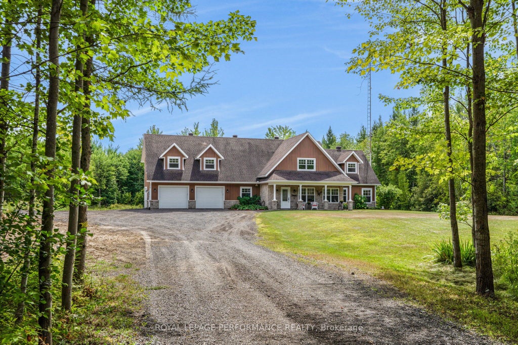 Set on 11 acres of land, this welcoming 4-bedroom, 3 full bathroom slab on grade home is the perfect retreat for a growing family. Surrounded by nature yet close to town, it offers the best of both worlds-privacy, space, and convenience. The main floor features an open-concept living and dining area filled with natural light, a spacious kitchen with plenty of cabinetry and an oversized island-perfect for family meals and gatherings. The primary bedroom includes a private 4-piece ensuite, while three additional bedrooms provide comfortable space for kids, guests, or even a home office. Enjoy year-round comfort with heated floors throughout the entire home, adding warmth and luxury to every room. The lower level offers even more room for family life, whether you need a rec room, play area, or extra storage. Outdoors, the possibilities are endless-kids can explore the pond, wide open yard, and trails through the trees, while parents relax on the full-length balcony overlooking the backyard. A double garage with a convenient side garage door makes it easy to store and access lawn equipment, bikes, and outdoor toys-perfect for busy family life. With 11 acres to call your own, this property is ideal for families who love the outdoors, space to play, and a home where memories are made.
