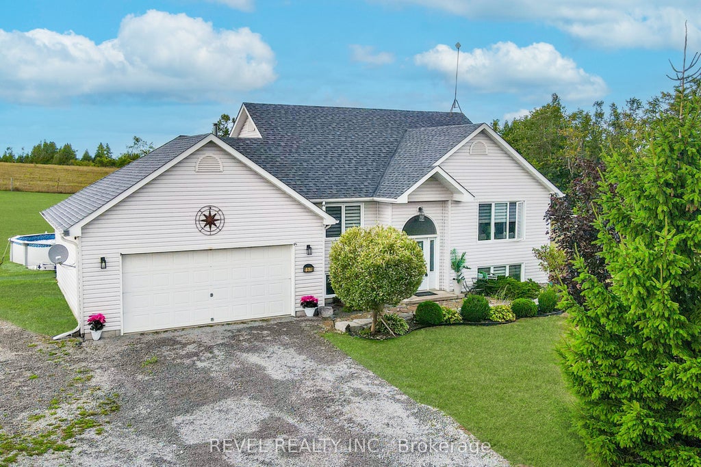 Welcome home to this beautifully crafted 5-bedroom, 3-bath raised bungalow, built in 2006 and set on a private 1.89-acre country lot. A large driveway and inviting entrance welcome you into this thoughtfully designed home. The open-concept main floor is perfect for modern living, featuring a bright chefs kitchen with pantry, coffee bar, and walkout to the back deck, seamlessly flowing into the dining and living areas. The grand primary suite offers its own private ensuite for comfort and relaxation. The finished lower level is ideal for family gatherings and entertaining, complete with a spacious rec room, full bar, three additional bedrooms, and a 3rd full bath. A combined laundry/utility space and convenient walk-up access to the attached garage add to the homes functionality.Step outside and enjoy evenings on the deck overlooking fields with no neighbours behind perfect for summer fun in the above-ground pool and watching picturesque sunsets. Centrally located just minutes from Lindsay and Peterborough, this property offers the best of country living with easy access to town amenities. Make this your next family home and start creating lasting memories here!