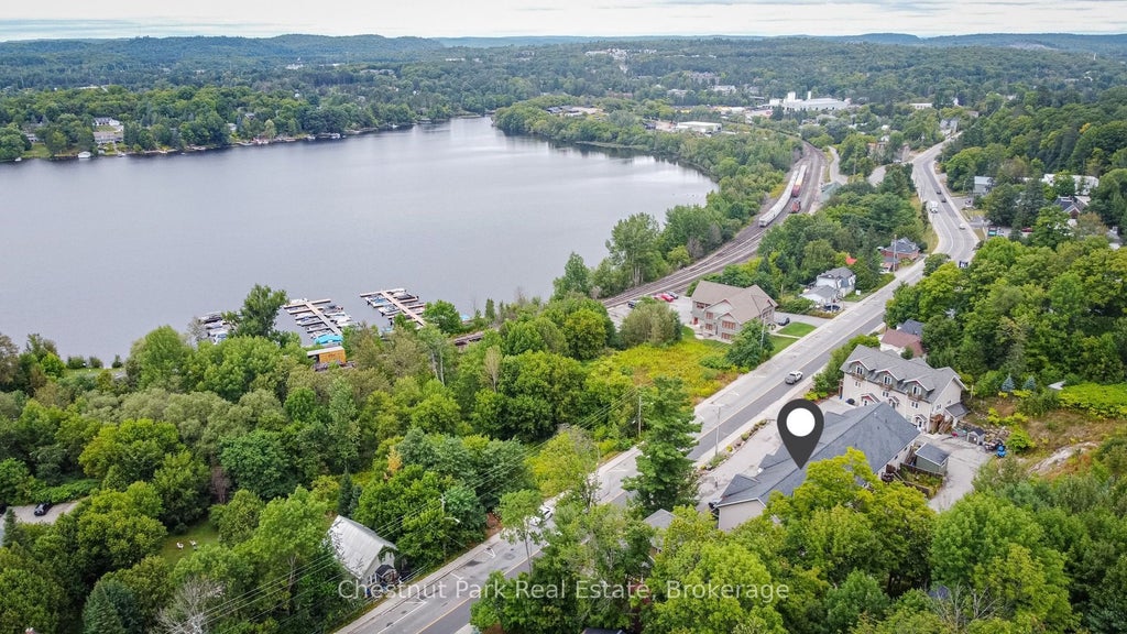 MOVE-IN READY TOWNHOME, located close to downtown Huntsville, offers the perfect mix of MUSKOKA CHARM, modern comfort, and everyday CONVENIENCE. Enjoy picturesque WATERFRONT VIEWS of Hunters Bay in this unbeatable location - just a short walk to Avery Beach and the Hunters Bay Trail - its so easy to enjoy the best of both nature and edge of town living. Inside, the home features a thoughtful layout with a bright and spacious 2-bedroom, 1-bath arrangement on the main floor, complemented by an additional bedroom with ensuite bathroom upstairs. The flexible floor plan works beautifully for families, first-time buyers, or those looking to downsize into a low-maintenance space without sacrificing comfort. Built with ICF construction for lasting durability and energy efficiency, the home has been well maintained and clearly cared for. The backyard has been transformed into a charming garden space, fully fenced for privacy, and perfect for outdoor enjoyment along with dedicated space for cultivating your own vegetables and flowers. Additional conveniences include on-site parking to accommodate 2 vehicles for extended family and friends (or renters if desired), plus the garage for inside parking and extra storage, all in a location that makes everyday errands and recreation effortless. From leisurely walks along the Hunters Bay Trail to evenings by the water, this property places you right at the centre of it all. With its rare combination of prime location, versatile layout, and low-maintenance lifestyle, this Main Street townhouse is an excellent choice for buyers seeking a home, a Muskoka retreat, or a smart investment in one of the regions most desirable communities. Call today for more information or to book your private tour of this absolute gem. Flexible closing available.