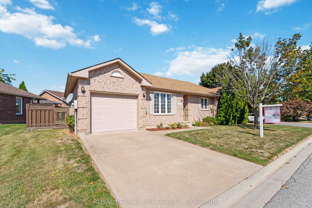 Discover this welcoming 2+1 bedroom, 2 bathroom bungalow in the highly regarded land lease community of Cherry Hill Estates. Nestled in the heart of Niagara, you'll be just minutes from award-winning wineries, local breweries and a variety of dining experiences. The main floor has been refreshed with all new vinyl plank flooring, keeping this area stylish and carpet-free. The front entrance opens into a generous living room with cozy gas fireplace and the dining room offers plenty of space for both everyday meals and entertaining. The kitchen features generous cabinetry, an option for a stackable washer/dryer and direct access to the garage plus all appliances are included. From here, step out to the newly stained deck, perfect for morning coffee or casual gatherings. Down the hallway, the large primary bedroom includes a walk- in closet with ample room for your king-size bed and furniture. The second bedroom is perfect for guest stays, as an extra tv room, hobby or office space. The staircase leading to the basement features brand-new carpeting for a fresh updated look and added comfort underfoot. Downstairs is fully finished with a second bathroom including shower and the versatile layout adds valuable extra living space to the home. There's additional closet space here as well as lots of storage. Outside, you'll love the convenient visitor parking for your guests. The monthly fee of $825. includes access to the private Clubhouse with heated pool, fitness centre, library, games room and social events as well as the maintenance of landscaped parkettes and the security of gated entry. At Cherry Hill you're not just buying a home - you're stepping into a lifestyle of connection, leisure and ease - where everyday feels like a getaway in the heart of Niagara!