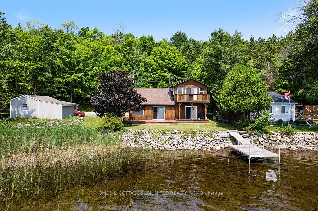 Nestled on the tranquil north shore of Dalhousie Lake, this well-maintained, partially furnished home or cottage is move-in ready just in time for summer memories. Featuring 3 spacious bedrooms (2 up, 1 down) and 2 full bathrooms, there's plenty of room for family and guests to relax in comfort. The oversized primary bedroom offers its own private balcony with stunning lake view perfect for morning coffee or quiet reflection. The open-concept main floor showcases a vaulted ceiling, warm pine flooring, and a cozy woodstove for those cooler evenings. The bright kitchen seamlessly connects to the dining and living areas, with patio doors leading to a generous lakeside deck ideal for entertaining or simply enjoying the peaceful surroundings. Convenience is key with a large main floor bath that includes laundry. The insulated garage/workshop features patio doors that open to the water's edge, offering versatile use of space. A charming bunkie tucked away at the back of the property provides a great guest hideaway or personal retreat. The shoreline is shallow with a solid bottom perfect for swimming and there's room to anchor your boat just offshore. Inside, natural light fills every room through abundant windows, creating a bright and cheerful atmosphere that brings the outdoors in. This delightful property is truly a pleasure to show full of charm, comfort, and lakeside appeal. Don't miss your chance to make it yours!