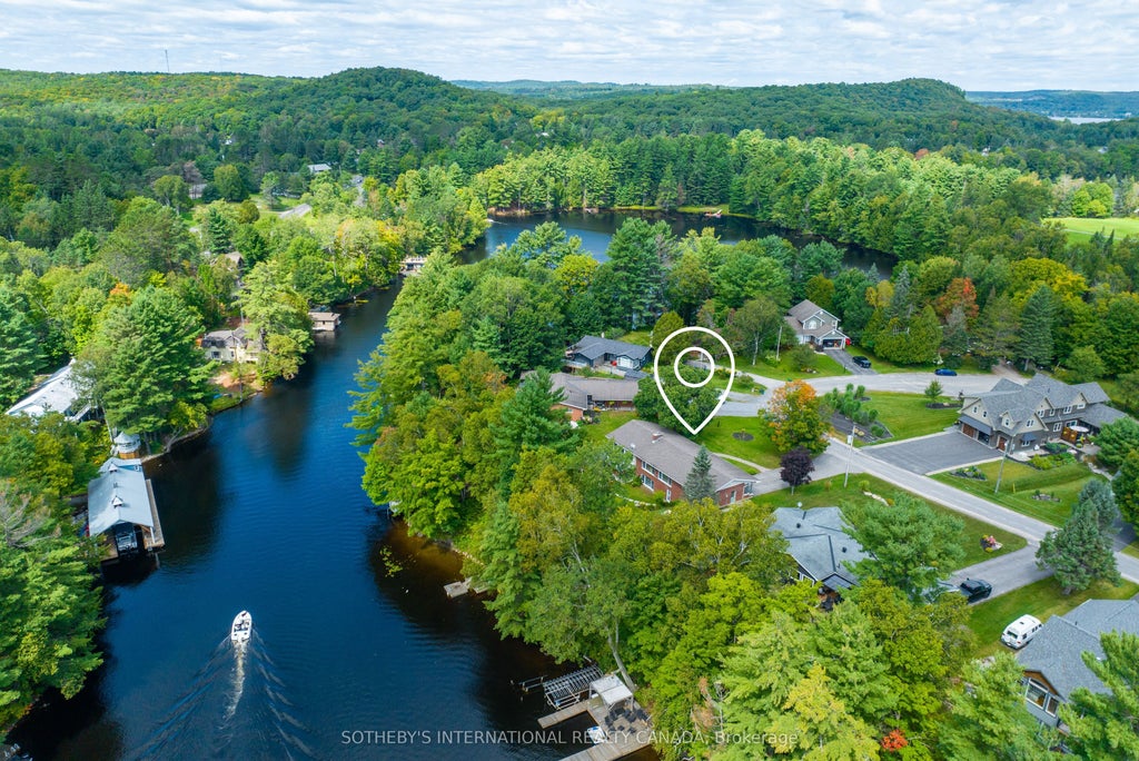 Discover your dream Muskoka River waterfront Year around home, just minutes from town by car or boat! This charming 3+1 bedroom bungalow on a quiet, dead-end street is a gem. The bright living room features a cozy gas fireplace, and a spacious sunroom offers breathtaking river views. Step onto the Riverside Deck for sun-soaked relaxation. The lower level boasts a fourth bedroom and a large recreation room, leading to your private riverfront yard. Your dock is the gateway to boating adventures or a refreshing river swim. Enjoy access to four lakes and over 40 miles of boating, with the added perk of cruising to town for shopping, dining, and entertainment. Embrace the Muskoka lifestyle your tranquil oasis and riverside haven await!