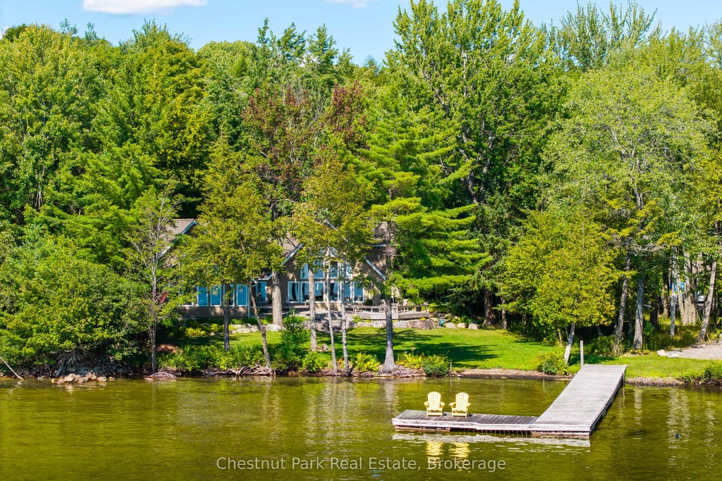 Set on the coveted shores of Lake Rosseau, this exceptional 1.7-acre family retreat offers everything you envision in a Muskoka cottage southwest exposure, a level lot, and long, protected lake views that feel like your own private paradise. With year-round access and a location just minutes from Port Sandfield and the JW Marriotts spa and dining, this property effortlessly combines seclusion with convenience. Enjoy pristine waterfront complete with a sand beach and spacious dock ideal for sun-soaked afternoons, water sports, and gathering by the lake. Mature gardens and a generous wrap-around porch frame the cottage, creating idyllic outdoor living spaces perfect for family connection and relaxed entertaining. Inside, the 4-bedroom, 3-bathroom cottage impresses with soaring vaulted ceilings and a full wall of windows that draw Lake Rosseau's beauty right into the heart of the home. An open-concept layout enhances the sense of space, anchored by a stunning chefs kitchen with quartz island and backsplash, stainless steel appliances, and a walk-in pantry. A wood-burning fireplace adds warmth and charm to the dining area, while the sunroom offers a peaceful spot to unwind. Thoughtfully designed with year-round comfort in mind and function, the home features hydronic in-floor heating, a main-floor guest suite with 3-piece bath, a versatile office or overflow bedroom, and an upper-level primary suite with a lofted office nook overlooking the living space. Engineered hardwood throughout, beautifully tiled bathrooms, and ductless AC units provide modern ease, while a paved driveway, two-car garage, and carport ensure ample parking for guests. This Lake Rosseau gem is the ultimate Muskoka escape private, picturesque, and perfectly suited for generations of family memories.