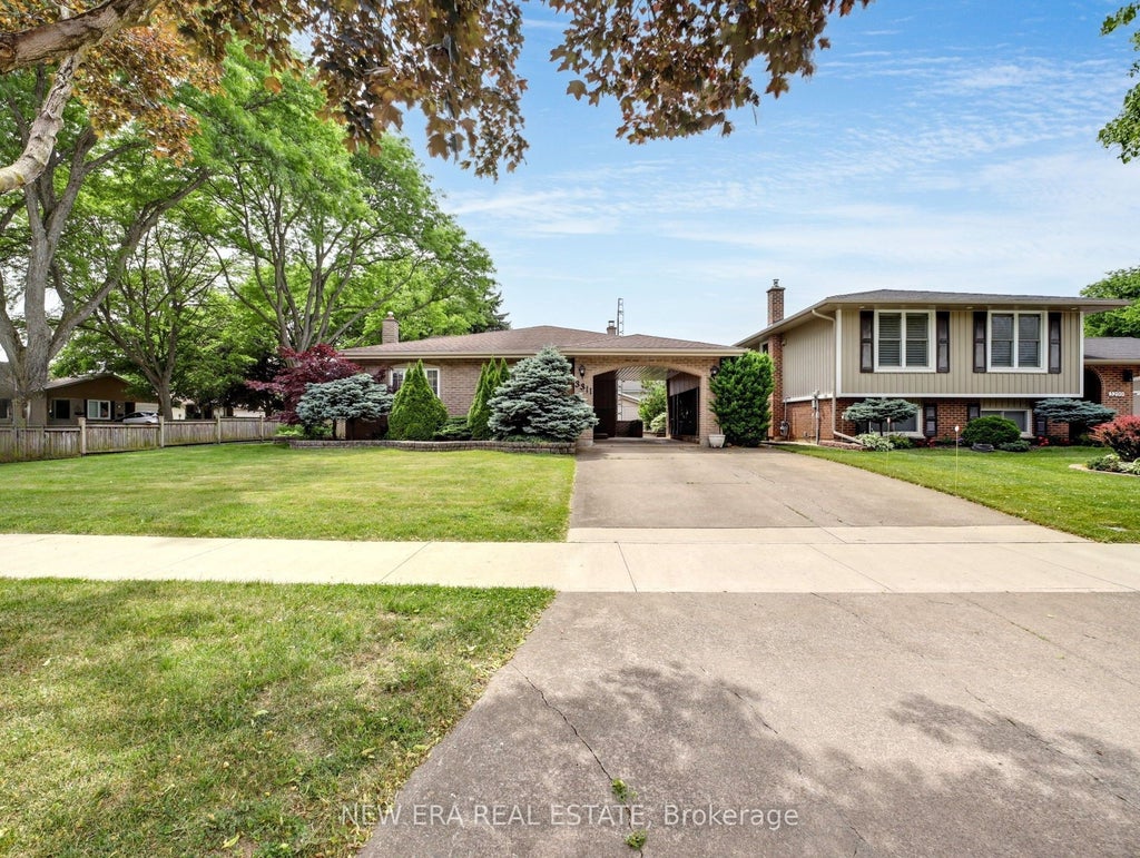 Welcome to this well-maintained detached backsplit in the desirable north end of Niagara Falls. This 3-bedroom, 2-bathroom home offers 1,054 sq. ft. of living space, a carport, and a concrete driveway. The main floor features a bright living room with engineered hardwood and updated windows, a fantastic functional kitchen with ample storage, and a sunlit dining area. Upstairs are three spacious bedrooms and a modern 3-piece bathroom. The lower level includes a cozy family room with a wood-burning fireplace, a 3-piece bath, a private office, and walk-up access to the carport. The finished basement offers a versatile rec room, laundry, and utility space. Outside, enjoy a landscaped, fully fenced yard with perennial gardens, a patio with gazebo, and a large shed. Recent updates include a new AC and furnace (2023). Close to schools, parks, public transit, and major highways.