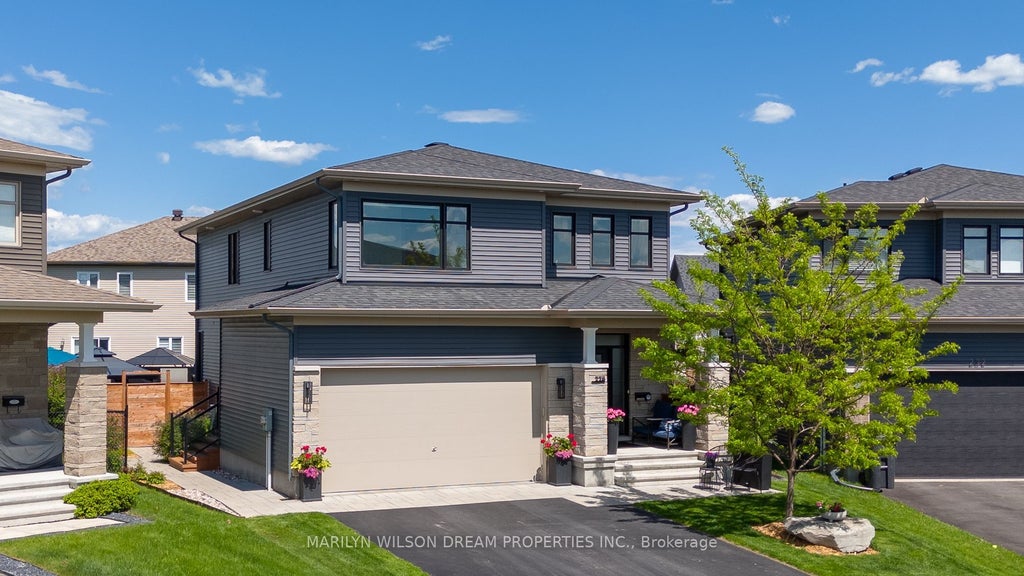 The perfect family home in Rockland, a growing community just 20 minutes from Orléans, where contemporary design, practical living, and a backyard oasis come together. With over $70,000 in custom builder upgrades and high-end finishes throughout, this exceptional property sits on a rare, expansive pie-shaped lot and offers 2,530 square feet of finished living space. The open-concept main floor features a bright, modern kitchen with quartz countertops, a farmhouse sink, upgraded appliances, and large island with seating. The dining area opens directly to the backyard through patio doors, while the family room with a cozy gas fireplace is ideal for gathering. A dedicated main-floor office with its own entrance adds flexibility for working from home or hosting clients. Upstairs, the spacious primary suite includes a dream custom walk-in closet and spa-like 4-piece ensuite. Three additional bedrooms and a full bathroom complete the upper level. The backyard is truly an entertainer's dream. Fully fenced for privacy, it features a heated saltwater pool, a custom cabana with bar and TV, a pool house, and beautifully landscaped gardens with custom privacy screens all designed to create your own private retreat. This home offers the perfect balance of modern comfort, functional living, and resort-style outdoor space all in a vibrant, family-friendly community experiencing exciting growth. The lower level is already drywalled with electrical and a 3-piece rough-in, awaiting your finishing touches. Dont miss your chance to own this outstanding property.