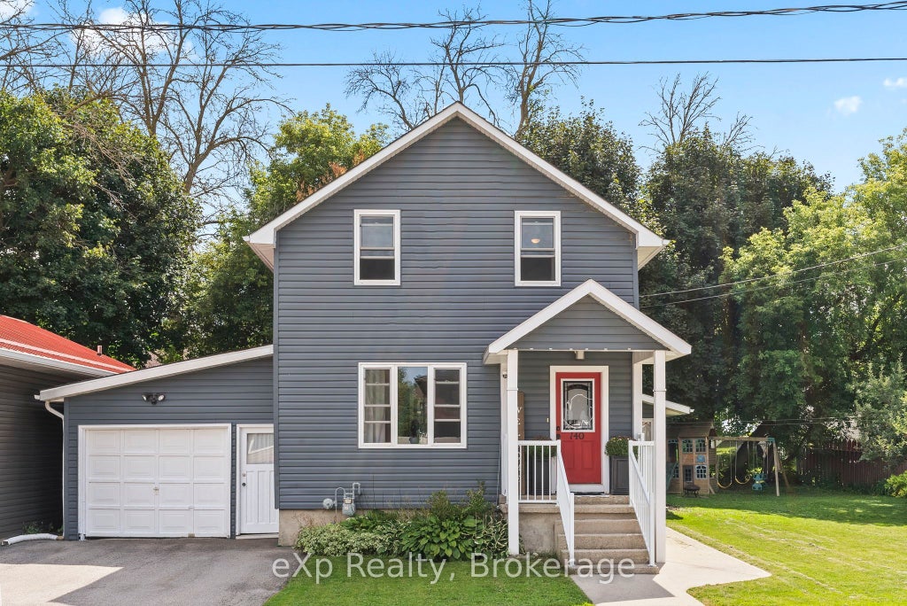 Deceiving from the Road! Welcome to this beautifully updated 1.5 storey home, ideally located just steps from the downtown core, park, splash pad, and sports fields - perfect for families and anyone who enjoys an active lifestyle! This property offers fantastic outdoor living with a spacious side yard, two-tier deck you can access from the eat-in Kitchen, and private hot tub great for relaxing or entertaining year-round. The attached garage leads into a practical mudroom with main floor laundry, making everyday routines a breeze. Inside, you'll find 3 comfortable Bedrooms and 2 full Bathrooms, along with a cozy living room featuring a classic wood-burning fireplace. Thoughtful updates throughout the interior and exterior add modern comfort and style, while maintaining the home's original charm. The full, unfinished Basement provides endless storage space! With its unbeatable location and move-in-ready appeal, this home is a rare find. Don't miss your opportunity to call it your own! 2017: Kitchen updated, Siding, Front Porch, Upstairs Bathroom, Front Door, Most Windows. 2021: Central Air. 2022: HWT. Second storey shingles replaced in 2010 and first storey 2015.