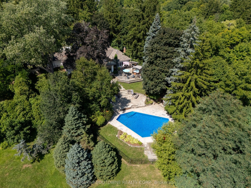 Welcome to Muskoka in the city! This extraordinary .96ac property, with its breathtaking views and total privacy, presents an extremely rare real estate opportunity. This gorgeous sprawling bungalow features 6,317SF of high-end finished space (3,417 AG) which over the last 15 years has had over 1 mil. in whole home renovations. Just to mention a few: Georgian Bay Ledge Rock exterior and massive rooftop terrace to enjoy the spectacular scenery. CHEF'S CUSTOM DREAM KITCHEN with solid wood cabinets, gas fireplace, Viking Pro Series 48" 6-burner double oven gas range with commercial grade exhaust hood, 3 dishwashers, Bosch B/I microwave, Electrolux 66" fridge & freezer combo, Hisense beverage fridge, Reverse Osmosis drinking water system, Commercial draft beer taps with chilled lines and True Keg cooler, Barista bar with La Spaziale commercial espresso machine, Pioneer B/I 5.1 Dolby audio system with subwoofer, Sony 42" TV and heated floors. You may never want to leave your kitchen! Step into the Huge Great Room with 10' ceilings. LED pot lighting T/O. Hardwood flooring T/O. Custom library/office with 2-sided gas fireplace and lounge area. Bathrooms have high-end fixturing, heated floors and extensive use of marble, granite and porcelain. Electronic blinds in kitchen, great room and primary bedroom. B/I temperature controlled wine cabinet in dining room. Special fiberglass roof shingles with 50 year warranty. Eavestroughs have LeafFilter screens. All main windows and patio doors. Concrete pool has a special paint finish, new Hayward heater, pump and salt water filtration. Recently completed basement with industrial design inspiration and bedroom with Arizona vistas. 22,000 watt Generac back-up generator. The addition of a 3-car insulated garage, heated and air conditioned. Extensive landscaping. Please click on the link below for all inclusions and floorplans. Just minutes to shopping, restaurants, schools, playground, park, trails, golf, Aldershot GO, etc. 10+++