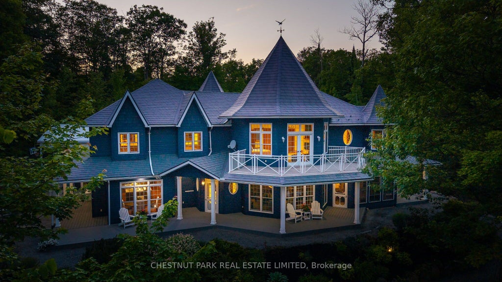 A once-in-a-generation offering on prestigious Boshkung Lake in the Haliburton Highlands, this private estate blends luxury waterfront living with distinguished equestrian amenities. With over 100 acres, 440 feet of deep clean shoreline, and 7000 sq ft of thoughtfully designed space, this exceptional property offers privacy, sophistication, and natural beauty. The custom home features 4 bedrooms, including a show-stopping primary suite with fireplace, soaker tub overlooking the water, an exceptional walk-in closet, and a private deck with sweeping lake views. The elegantly appointed eat-in kitchen is a true centrepiece featuring premium appliances, custom cabinetry, expansive prep surfaces, and a sunlit breakfast area perfect for casual dining. A butlers pantry adds function and flair for effortless entertaining. The kitchen opens to an expansive dining room with additional seating and a striking fireplace, ideal for memorable gatherings. Multiple living areas throughout offer spectacular water views, and walkouts lead to maintenance-free decking that extends living space outdoors. The property features several outdoor lounging, dining, recreation and entertaining areas designed to maximize lakefront serenity and privacy. A media/games room with wet bar, home gym, and generous indoor-outdoor flow enhance year-round living. For the discerning equestrian, the estate includes a 70 x 140 indoor riding arena, multiple paddocks, and well-appointed stalls, providing the infrastructure for year-round riding, training, and care. Private trails wind through the forested acreage ideal for horseback riding, hiking, or peaceful exploration. With a 4-car garage, beautifully landscaped grounds, and complete privacy, this rare waterfront estate unites refined living, outdoor recreation, and timeless elegance in one of Ontarios most coveted lakefront settings.