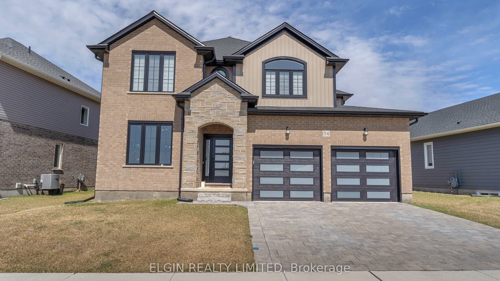 Combine modern luxury, a stunning layout and sought after location and you will arrive at 54 Optimist Drive in Talbotville. This four bed, four bath custom built Don West home features an open concept floor plan that is nothing short of wow!! Spacious and bright living and dining areas with large windows, fireplace, a vaulted ceiling and designer kitchen with upgraded cabinetry and island. Patio doors off the kitchen lead to your deck and backyard space. Laundry is conveniently located in the main floor mud room off of the double car garage. Upstairs you will find four large bedrooms- primary bedroom with walk-in closet and 5 piece ensuite, two bedrooms that share a Jack and Jill 3 piece bathroom, another bedroom with a 4 piece ensuite. Basement has development and in-law suite potential with large egress windows making it great additional living space if required. The front of this home overlooks a park in a great family neighbourhood centrally located between St.Thomas and London and is close to the 401.