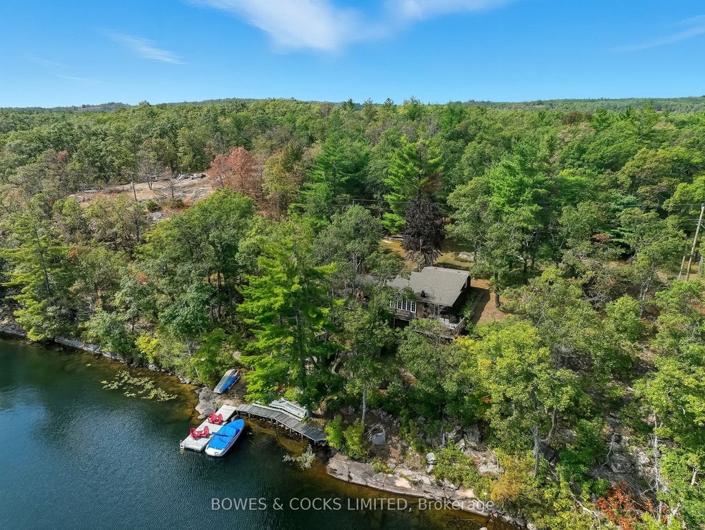 LAKE KASSHABOG - Welcome to this beautifully maintained 2 bedroom cottage nestled on over an acre of private, scenic land with breathtaking views over MacDonald Bay. With 188 feet of prime waterfront, this property offers amazing swimming right off your dock. Step into the inviting 3 season sunroom, the ideal spot for morning coffee or sharing stories of the one that got away. Inside, the cozy living room features a stunning wall of windows that frame panoramic lake views, while a woodstove adds warmth and ambiance for those cool autumn evenings. The updated kitchen flows effortlessly into the dining area, with direct access to a walkout deck that makes barbecuing and outdoor dining a breeze. Both bedrooms are comfortably sized and include built-in closets. A full 4-piece bathroom with a stand-up shower and relaxing Jacuzzi tub completes the main interior space. Outdoor living is just as impressive, with multiple decks and seating areas designed for entertaining or simply soaking in the natural beauty. Down by the water, you'll find several waterfront decks, a generous dock, and a convenient storage shed for your water toys. Need extra space for guests? A spacious bunkie provides accommodations for up to seven more people. Plus, there's a detached garage offering additional storage or workshop potential. Located just a short drive or boat ride from the public beach, great fishing spots, and easily accessible via a privately maintained year-round road, this cottage is your gateway to all that Kasshabog Lake has to offer.