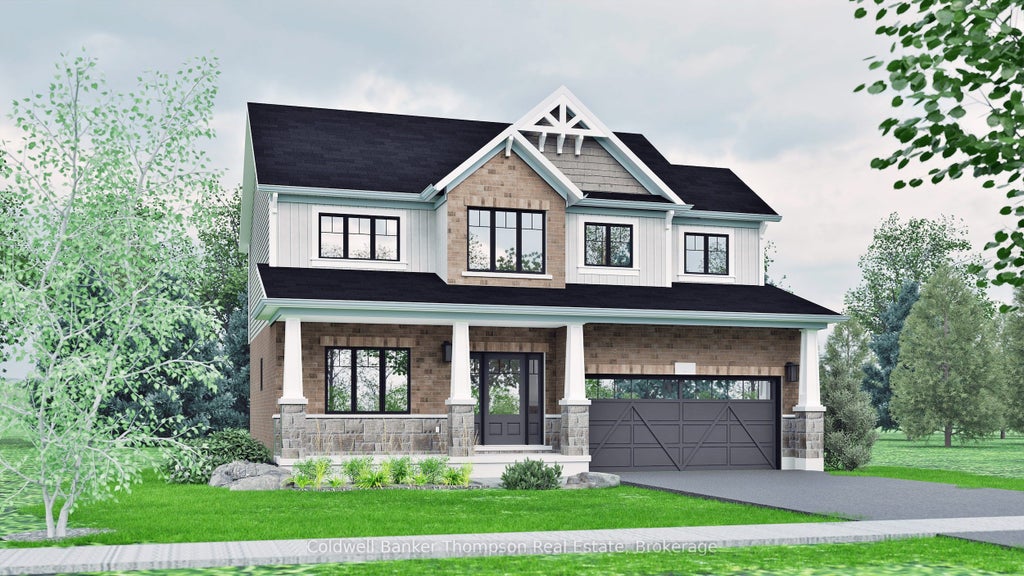 To be built by renowned Devonleigh Homes, this Newport floor plan in the sought-after Woodstream community blends timeless design with modern functionality. Set on a lot that backs onto peaceful green space, the homes exterior showcases a refined combination of stone, brick and vinyl siding in a neutral palette that maximizes curb appeal. A welcoming covered entry leads into a bright and spacious interior designed for todays lifestyle. At the front of the home, a versatile den or office provides an ideal setting for remote work, studying, or simply a quiet space to focus. The heart of the main level unfolds into an airy open-concept living, dining and kitchen area, where natural light and outdoor views create a warm, connected atmosphere. A stylish two-piece powder room and convenient inside entry from the attached double car garage enhance everyday ease. Upstairs, three generously sized bedrooms provide restful retreats for family and guests. The primary suite is a private haven featuring a walk-in closet and an elegant five-piece ensuite with a separate shower, soaking tub and double-sink vanity. The two additional bedrooms share a well-appointed four-piece guest bathroom, and the second-floor laundry room keeps chores streamlined and out of sight. The unfinished walkout basement offers exceptional potential to expand your living space, with direct access to the backyard and the tranquil green space beyond. With all municipal services in place, including natural gas, town water and sewer, high-speed internet and curbside garbage collection, this home is designed for both comfort and convenience. Set in a friendly neighbourhood with easy access to parks, schools, shopping and recreation, this soon-to-be-built residence invites you to create the lifestyle you've been dreaming of in one of the areas most desirable communities.
