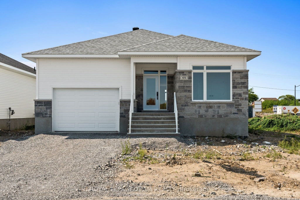Welcome to Stirling Meadows in Brockville. This newly built bungalow offers both comfort and convenience, with easy access to Highway 401, shopping, and everyday amenities. The 'Stirling Hemlock Hip Roof' model by Mackie Homes provides approximately 1,539 sq. ft. of thoughtfully designed living space with three bedrooms, two bathrooms, and an open-concept layout that maximizes functionality and flow. The kitchen showcases two-toned cabinetry, stainless steel appliances, a neutral backsplash, and a generous island ideal for casual dining. The adjoining dining room and great room create a warm, inviting space, complete with a cozy fireplace and access to the sundeck and backyard for outdoor enjoyment. Additional features include a dedicated laundry room, a family entrance with interior access to the oversized single garage, and a primary suite with a walk-in closet and a beautifully appointed 4-piece ensuite.