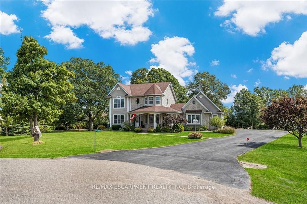 If a country home is what you are looking for, look no further. You will love this 2-storey home on an acre of land at the end of a quiet cul-de-sac. An inviting wrap-around front porch that leads you inside to the main floor features a bright office, powder room, and an eat-in kitchen/dining with granite counters and porcelain tile flooring that flows through to the foyer and powder room. The eat-in kitchen opens to a large back deck with a gazebo. Step into the formal dining room with lots of natural light, the living room highlighted by rich hardwood flooring and a cozy gas fireplace. Upstairs youll find a beautiful, spacious primary suite with a walk-through closet with custom cabinetry and an updated 4 pc ensuite. Two generous sized bedrooms each with closet space and natural light. A 4-pc bath, and a convenient laundry room. The finished bonus room above the double car garage is great for an extra bedroom, guest room or den. In the basement, a large rec room/exercise room, a crafting room and workshop space and a cold storage. A long paved driveway with parking for up to 10 vehicles. The double garage comes with two automatic door openers. Outside, plenty of shade from all of the mature oak trees, and two sheds - a charming she-shed, and a garden shed for extra storage. A double garage with two automatic door openers. You will love the beautiful yard with plenty of mature shade trees. This is a must-see! A rare opportunity to enjoy small-town living in a well-loved family home.