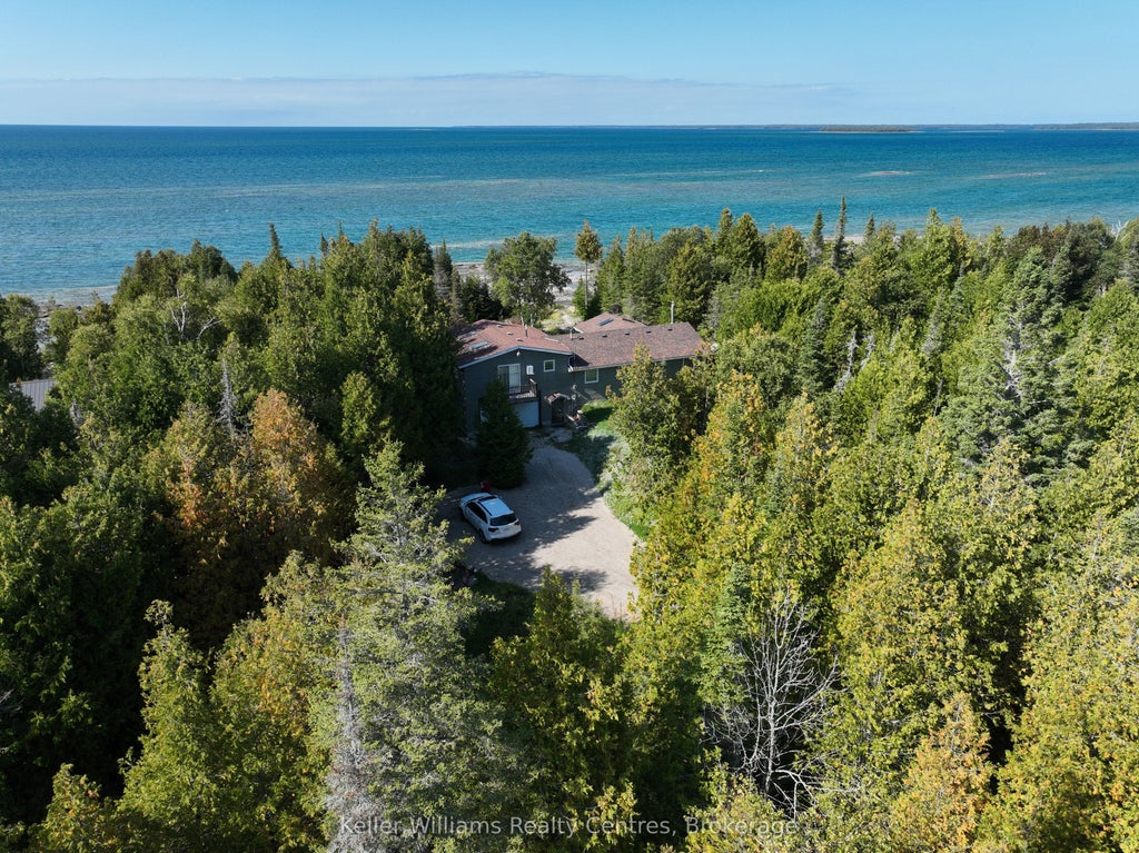 Imagine waking up with water views in the large private bedroom with ensuite (over 500 square feet) of this waterfront property. Step inside and discover a bright, inviting layout designed for lakeside living, set in your own private oasis hidden away from the bustle of summer tourism. The main home offers three comfortable bedrooms, two bathrooms, a dedicated laundry room, a gorgeous fireplace, large skylights and is located just 10 minutes from Tobermory for dining, shopping and excursions. Choose one of the three spacious decks to relax and enjoy the sweeping views of the water capturing breathtaking sunsets, facing the summer sunset directly and year round. The waterfront features a unique flat rock waterfront where waves are kept calm from an outer rock shelf, and easy access to waters that are deep for swimming. The easy to use newer electric sauna adds a touch of relaxation after a day on the water. Picture yourself entertaining the whole family or spending quiet evenings in the bunkie with panoramic windows overlooking the water as the sun sets over the lake. With modern updates such as a newer water purification and chelation system, a submersible well pump with underground wiring, and a Generac generator, you'll be ready to make memories year-round. Heat is amitsubishi Heat pump installed 2 years ago which also provides the cooling, and a propane fireplace for cozy winters. This rare waterfront property combines comfort, style, and lifestyle in one of the Bruce Peninsula's most sought-after settings. Whether you're looking to move in full time or turn it into a vacation rental for extra income, this is where memories will be made. Schedule your private showing today and experience why waterfront living here is truly exceptional.