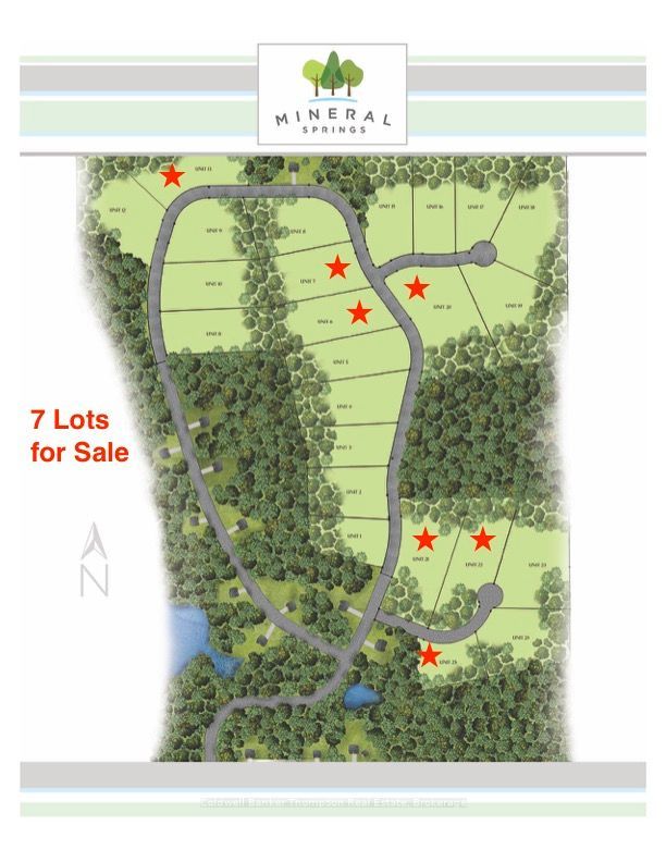 Builders and Investors!! An amazing opportunity to purchase SEVEN estate lots in an established neighbourhood close to Huntsville. Mineral Springs Development, comprised of recently built executive estate homes, is ready for a new builder or investor to put their finishing touches on it. This sought after community offers 2+ acre lots, privacy, mature hardwood trees, hydro at the lot line, and fibre optic internet, all while only 15 minutes from shopping and the conveniences that downtown Huntsville provides. Mineral Springs has established itself in the market as a great location for growing families and retirees with its natural beauty and the peace and quiet that comes with living here. Many of the lots already have a cleared building area and rough driveway in place. Huntsville and the Muskoka region offers world class golf/dining/entertainment, amazing schools/hospitals and easy access to Algonquin Park, hiking/skiing trails, boating, public beaches and snowmobile/atv'ing. Make Mineral Springs your next project!
