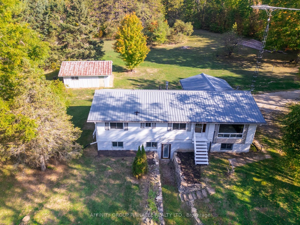 Welcome to 16 Sticky Lane a private 2.4-acre retreat located just minutes north of Coboconk on a quiet dead-end municipal road. Nestled among mature trees, this raised bungalow offers the perfect blend of privacy and convenience. The main level features 3 bedrooms, a full bath, and an open-concept kitchen, dining, and living area filled with natural light. The partially finished lower level includes a walkout entrance, small kitchenette, 3-piece bath, and plenty of potential for an in-law suite or additional living space. Enjoy year-round comfort with forced-air propane furnace from 2024, steel roof for easy maintenance. A detached double-car garage provides excellent storage and workspace. With plenty of room to roam outdoors and easy access to nearby trails, this property is ideal for those seeking country living with modern amenities close by.