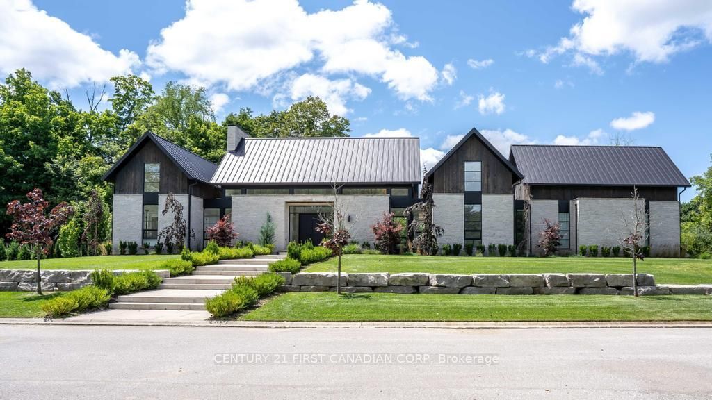 A Masterpiece of Scandinavian Design and Modern Luxury. Discover 3819 Deer Trail, a one-of-a-kind luxury residence nestled in the heart of Lambeths exclusive Deer Trail enclave. Set on a private cul-de-sac and surrounded by nature, this home offers a rare blend of peaceful seclusion and sophisticated urban living. Inspired by contemporary Scandinavian architecture, the home radiates warmth and minimal elegance. Its striking stone exterior is both timeless and modern, creating a bold first impression. Inside, youll find over 8,500 square feet of thoughtfully designed space, where every detail reflects quality craftsmanship and intentional design. This 5-bedroom, 5 1/2 -bathroom home is designed for elevated everyday living. The main level features 26-foot vaulted ceilings, flooding the space with natural light and creating a stunning sense of openness. The chefs kitchen is equipped with premium appliances, custom cabinetry, and an oversized island, flowing into an outdoor living area perfect for entertaining or unwinding in private. The lower level is a true extension of the homes luxurious feel, offering a home theatre, a stylish bar, second kitchen, home gym, sauna, guest suite, and a large great room -ideal for hosting or relaxing. For car enthusiasts or large households, the home includes a 5-car garage and parking for up to 16 additional vehicles. 3819 Deer Trail is more than a home - its a retreat. A place where modern elegance, Scandinavian simplicity, and natural tranquility come together to offer an unparalleled living experience in London, Ontario. Located minutes from schools, trails, shopping, and Hwy 401 access. A rare offering in one of Londons most sought-after neighbourhoods.