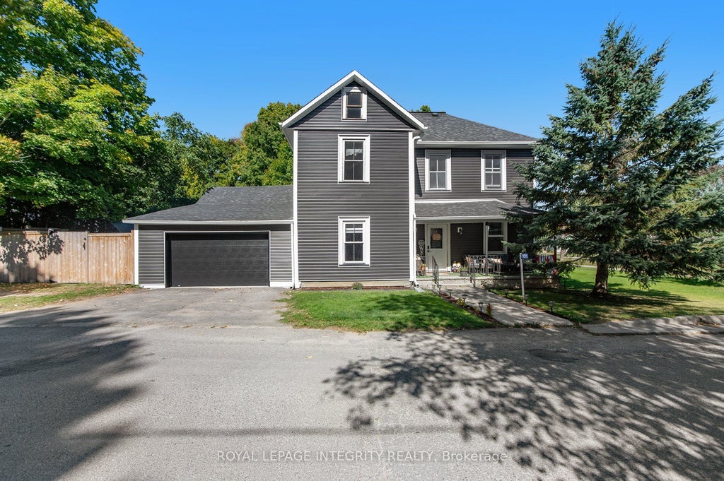 This country chic home is located in the welcoming village of Lanark and is within walking distance to the downtown core of the village as well as the local elementary school. The spectacular corner lot offers plenty of out door space with a fenced in rear yard, giving you privacy for enjoying family fun. There is additional parking adjacent to the fence by the 2 car garage. Why not take in your surroundings from the inviting front verandah, kick back and enjoy your morning coffee. This wonderful 1800 sq ft home provides you with loads of space for your growing family. The main level is home to the large dinning room, oversized living room and family room/flex space as well as the generously sized kitchen with access to the 4pc bath. The second level has 4 spacious bedrooms as well as a 2 pc bath and in addition there is an expansive attic area that could be utilized for extra storage. There have been a number of updates to this fantastic home over recent years which include: Windows have been updated over the years. Insulated garage door 2024 yr appx. Propane furnace appx 8 yrs. Propane hot water tank owned appx 2023 yr. All plumbing replaced appx 2024 yr. Fence and Vinyl siding appx 2024 yr. Roof shingles 10 yrs approx. Please note that natural gas will be coming to this area soon.