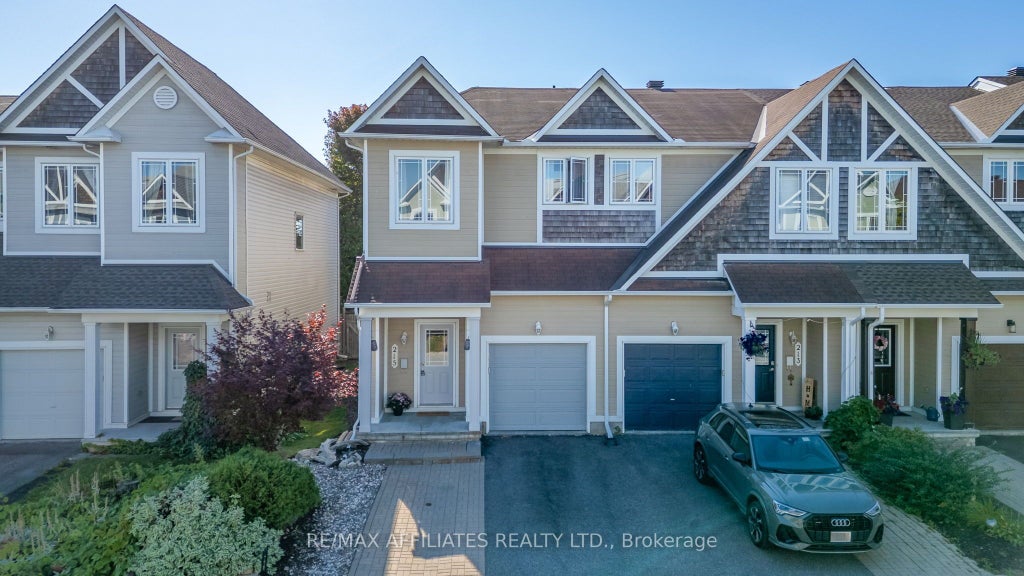 Welcome to 215 Catamount Court! A beautifully maintained 3 bedroom, 2.5 bath end-unit townhome nestled in the heart of Kanata's desirable Emerald Meadows / Trailwest community. With its warm curb appeal, widened interlock driveway offering rare side-by-side parking, private fenced backyard, and attached garage with loft, this home combines thoughtful design with unbeatable location and lifestyle!  Welcomed by a bright, spacious foyer with ample closet space, a convenient powder room, and direct access to the garage. The open-concept layout unfolds with rich hardwood floors flowing through the main living area, creating a warm and elegant space. The kitchen includes stainless steel appliances, a large central island, generous counter space, and plenty of cabinetry. The sun-filled dining area is designed for effortless entertaining and everyday comfort. Patio doors off the living room conveniently lead to a private, low-maintenance backyard featuring a two-tier deck and mature trees. Upstairs features two generously sized bedrooms with ample closet space, a 3-piece family bathroom and an oversized primary bedroom equipped with walk-in closet and 3-piece ensuite. The basement boasts a rec room with a cozy gas fireplace ideal for movie nights, a home gym, or a quiet place to unwind. It also features a laundry/utility room and plenty of storage space to stay organized. This home is just minutes from top-rated schools, Hazeldean Mall, Walmart, Superstore and so much more! Outdoor enthusiasts will love the abundance of parks, playgrounds, and walking trails nearby. Commuting is a breeze with easy access to Highway 417 and OC Transpo service.
