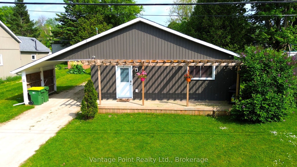 Welcome to this 2 bedroom, 1 bathroom home offering 875 sq ft of open-concept living in the heart of Flesherton. The kitchen features a unique live edge counter that flows into the dining and living areas, creating a warm, inviting space. Recent updates include a new gas furnace, hot water heater, water treatment system, and upgraded electrical. The spacious primary bedroom has direct access to the backyard, while a lovely front porch adds curb appeal. Outside, enjoy a large backyard with room to garden, play, or relax, plus the potential to convert the carport into a full garage. Set on a quiet street close to shops, schools, and trails, this property is an excellent choice for a starter home, retirement living, or a weekend getaway.