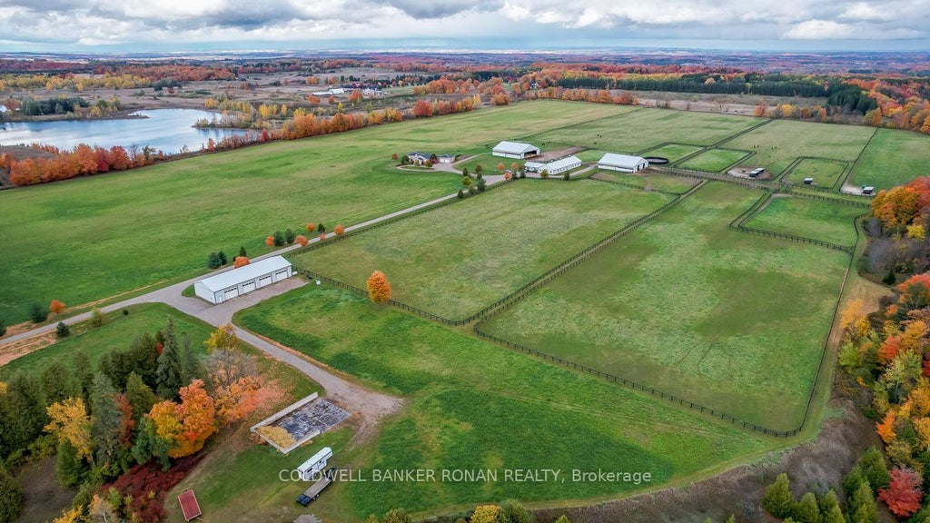 77 acres in the picturesque landscape of Mono, just north of HWY 9 & west of Airport Rd, you'll find this property perfectly suited for Equestrian or Livestock Facility. The estate boasts an array of well-constructed buildings, including a spacious 3000+ sqft ranch bungalow featuring 4 bedrooms, 4 baths. Oversized 2-car garage provides ample space for vehicles. Main barn is equipped w/ 16 stalls, office, 2pc bath, and heated feed rm, along with a convenient 2-bedroom apartment attached to it. Two substantial 80x80 ft structures (6400 sqft each) are also on the property. One of these buildings accommodates 8 stalls, run-ins on the south side, and hay storage, while the other offers extensive round or square bale storage and a half run-in on the south side. Features 10 paddocks & 35 acres of high-quality hay fields, 4000 sqft implement building with 4 roll-up doors, each measuring 12' x 14'. An ideal choice for equestrian enthusiasts and those seeking a tranquil rural lifestyle. **EXTRAS** Conveniently located, this property is a mere 50min drive to Woodbine, 14 min to Palgrave Equestrian Park, 40 min to Angelstone Tournaments & 40 min to Pearson International. The soil is sandy loam, ideal for various agricultural endeavors.
