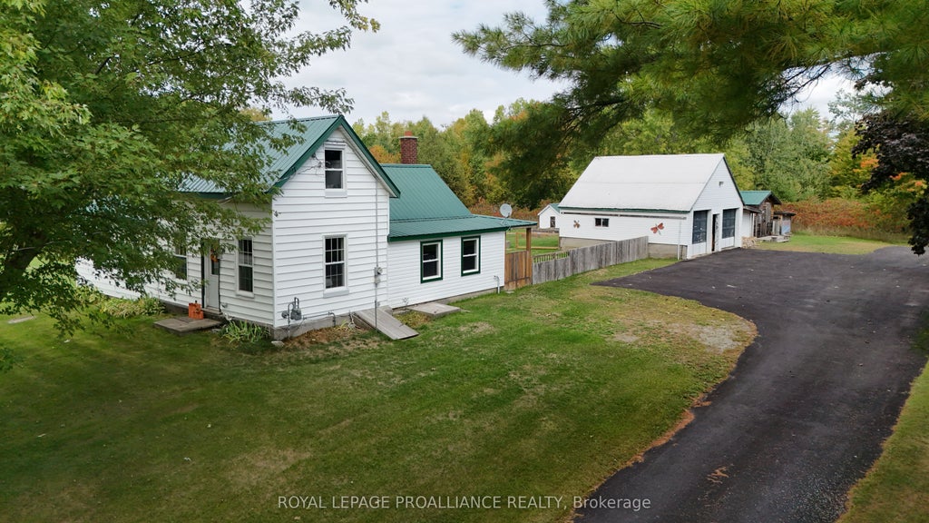 Nestled on the scenic and sought-after Old Madoc Road, just north of Belleville, this beautifully updated 2-bedroom, 1-bathroom home offers the perfect blend of peaceful rural living and unbeatable access to modern conveniences. Enjoy quick connections to Highway 401 for easy commuting, while being surrounded by the tranquility of nature trails, trees, and fresh air await right outside your door.Set on an expansive 1.3-acre lot, this one-and-a-half storey home has been tastefully renovated throughout, combining timeless charm with modern comfort. The main living areas are spacious and bright, with thoughtful updates that make this home truly move-in ready.Low-maintenance features include a durable metal roof and vinyl siding, giving you peace of mind for years to come. Outside, you'll find a fully fenced portion of the backyard perfect for dogs or kids to safely enjoy the outdoors.A large detached double-car garage provides ample room for vehicles, hobbies, or a workshop, and multiple outbuildings and sheds (in various sizes) offer endless possibilities for storage, gardening, or creating your own outdoor hangout spaces.Whether you're looking to downsize, escape the city, or simply enjoy more space and serenity, this property offers the ideal combination of privacy, practicality, and proximity. Don't miss your chance to own this charming countryside retreat!