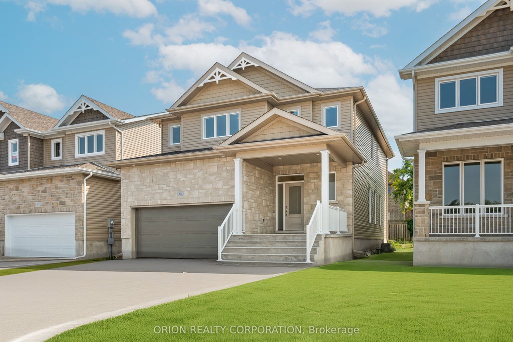 Save $65,000 right away with over $40,000 in upgrades already included and the Quick Close Rebate (not reflected in price). These quick occupancy homes create a rare opportunity to move into a brand-new home today or in the very near future without the wait of a new build. The Parkridge offers 2,510 sq/ft of open concept living with 4 bedrooms and 2.5 baths. Highlights include a bright living room with vaulted ceiling, spacious dining room, main floor den with French doors, and a large kitchen with walk-in pantry, extended island, quartz countertops, and stainless-steel canopy hood fan. Convenient main floor laundry/mudroom and a primary suite with walk-in closet and luxury 4-piece ensuite add everyday comfort. Located in Kingston's sought-after west end, you're close to shopping, schools, parks, and transit, all in a family-friendly neighborhood. This home comes loaded with upgrades: hardwood and tile flooring, upgraded cabinetry, quartz countertops throughout, extended kitchen cabinetry, pot lights, and more, on top of CaraCos' standard features like 9 ceilings, natural gas fireplace, Energy STAR windows, and a 7-year Tarion warranty. A craftsman-inspired exterior completes this spacious, stylish detached home, move-in ready with exceptional value.