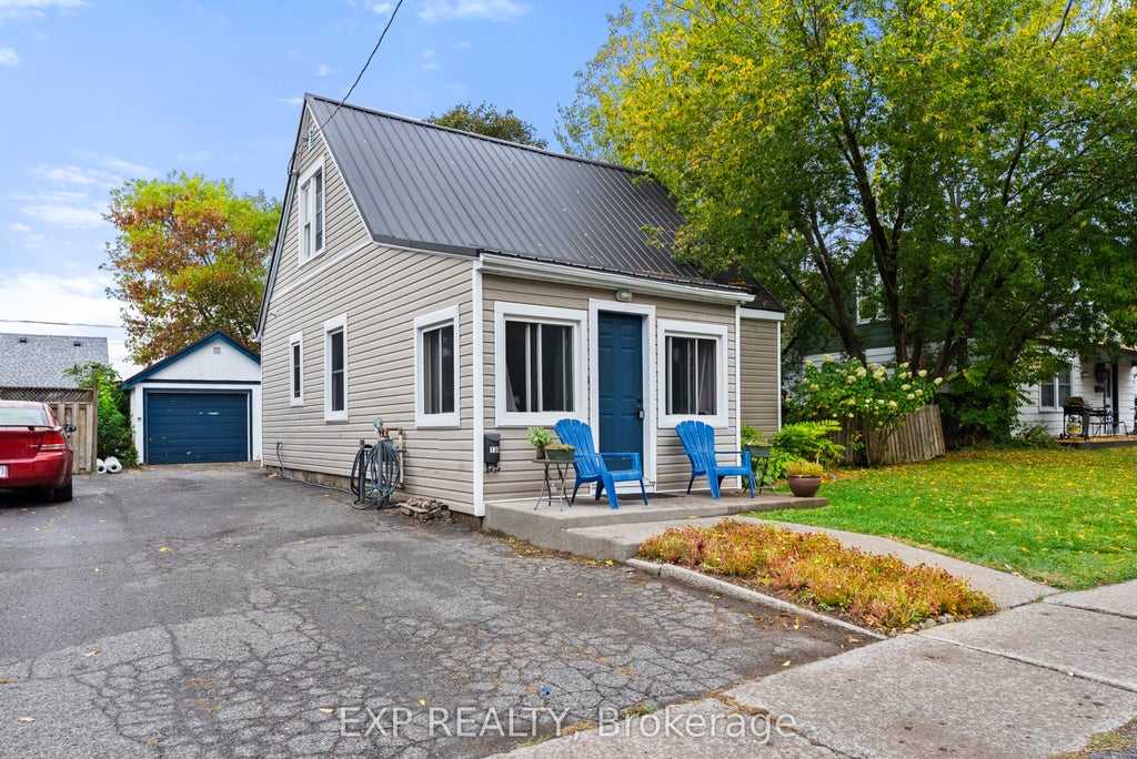 Cute and well-kept 3-bedroom, 1-bath detached 1.5-storey home in Trenton with great curb appeal and tons of character throughout. The main floor features a spacious living area and a convenient primary bedroom, making it ideal for anyone who prefers main-level living. Upstairs you'll find two additional bedrooms perfect for kids, guests, or a home office. All the important big-ticket items have been updated in recent years, including a durable steel roof on both the home and garage, newer windows, furnace, and central air conditioning, giving peace of mind for years to come. The detached single-car garage is insulated and comes with loft storage, offering plenty of potential for a workshop, studio, or hobby space. The fenced-in backyard provides ample room for gardening, pets, or outdoor entertaining. Located just 3 minutes from CFB Trenton and 4 minutes from downtown shops, restaurants, grocery stores, pharmacy, City Hall, and the public library, with Trenton Memorial Hospital only 5 minutes away. Whether you're a first-time buyer, investor, or down-sizer, this home offers solid value, a convenient location, and move-in-ready comfort in one of Trenton's most desirable areas.