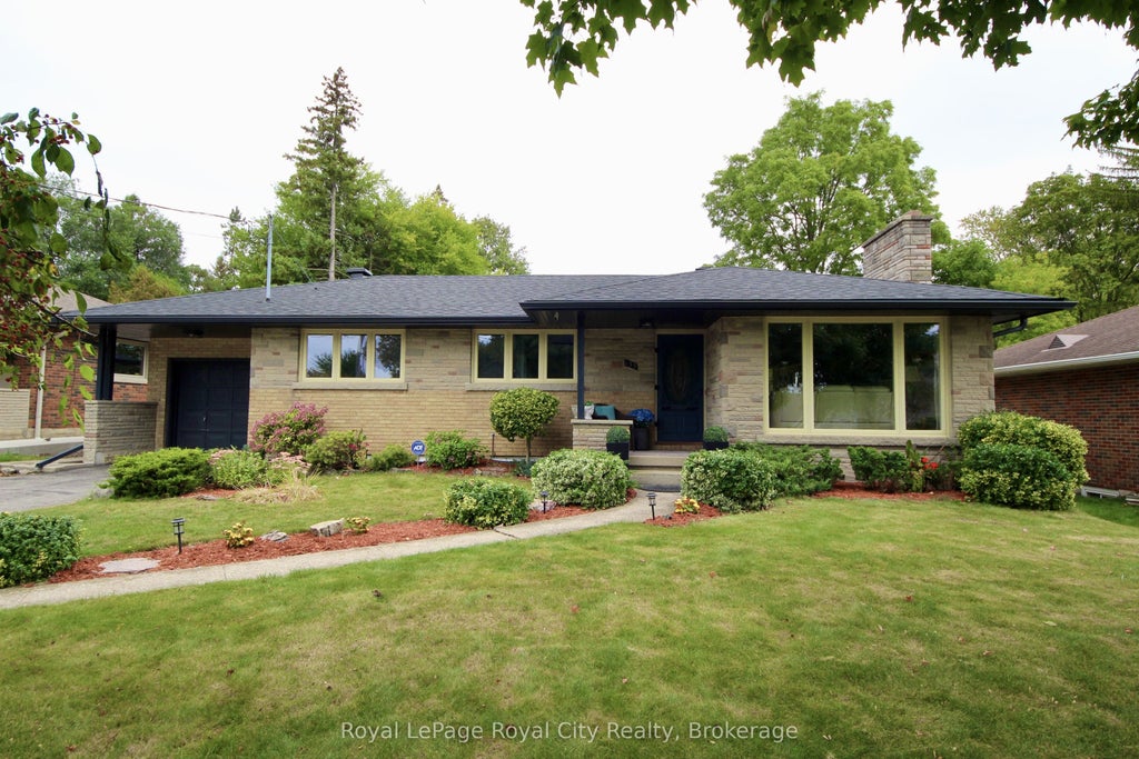 BRAND NEW BATHROOM AND KITCHEN !! New bathroom pictures will be posted soon . Here's the Neighbourhood ! Here's the Street ! Here's the Lot ! And Here's the Home ! And at an AMAZING PRICE ! Rarely do all elements come together in such a perfect match. This gorgeous mid-century yellow brick bungalow sits on a huge park like setting in one of Guelph's most cherished neighbourhoods. These folks are sad to be leaving this beautiful place, but unexpected circumstances have pre-empted their plans. Almost everything has been updated ..... shingles, insulation, eves and soffits, hardwood floors, a new kitchen, new paint, and even new front doors. This was to be the forever home, and only a few updates remain to be done. Inviting curb appeal with beautiful landscaping grabs your eye from the street. Charm and character will captivate you as you stroll into this spacious light filled haven offering almost 1300 square feet of comforting space. A welcoming front porch leads into a foyer and a huge living room with new oak hardwood floors, a fireplace, and a separate dining room. A brand new kitchen with white cabinetry, quartz counter tops, ceramic floors and stainless steel appliances will bring joy to the chefs in the home. Three good sized bedrooms and a 4 piece bathroom complete the picture. Floor to ceiling livingroom windows and over sized windows in all the rooms connect you to huge outdoor spaces that will bring serenity to your day. The sprawling 64 X 160 foot lot provides a peaceful retreat within the highly sought after Exhibition Park neighbourhood. The basement is a clean dry slate for your vision if you should need additional space or an opportunity for rental income. There is already a toilet down there. Come have a look and see how this home could be the ONE you have been searching for !