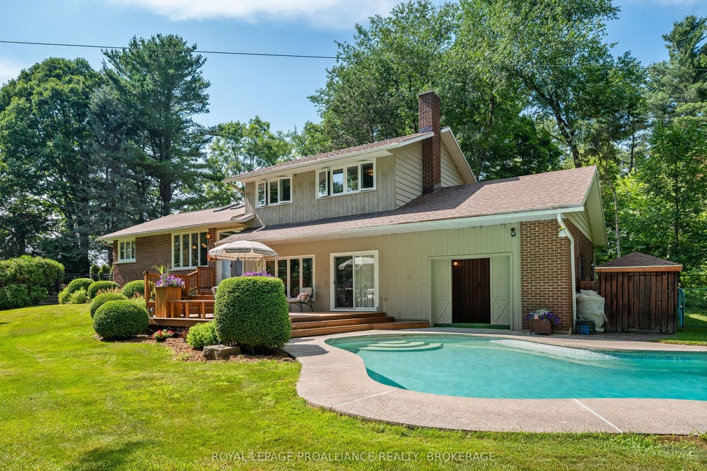 Rural Serenity Meets River Living - 120 Cross Cemetery Road. Discover the perfect blend of privacy, nature, and comfort on this stunning 11+acre property. Nestled beside Parks Canada Landons Bay, you'll enjoy direct access to scenic walking trails and the St. Lawrence River just down the road ideal for outdoor enthusiasts and nature lovers. This well-maintained, one-owner home has never been offered for sale before and offers timeless charm with thoughtful care throughout. With three spacious bedrooms, and a layout that welcomes both family living and quiet retreat, it's easy to make this home your own. Step outside and soak up summer in the beautiful in-ground cement pool, crafted by St. Lawrence Pools - perfect for relaxing after a hike or entertaining family and friends. Or enjoy the indoor sauna just off the pool area. Whether you're seeking a peaceful rural lifestyle, room to roam, or proximity to Gananoque and Kingston, this rare gem checks all the boxes. Don't miss your opportunity to own a piece paradise. Added noted features, heated floors in main floor foyer, laundry room and powder room. Glass pocket doors separating the first floor foyer and the rest of the home. Propane fireplace that throws out 26,000 BTUs plus wood burning fireplace in family room. Pull out stool in laundry room to put on shoes. Easy drive to Gananoque, Kingston and Brockville.