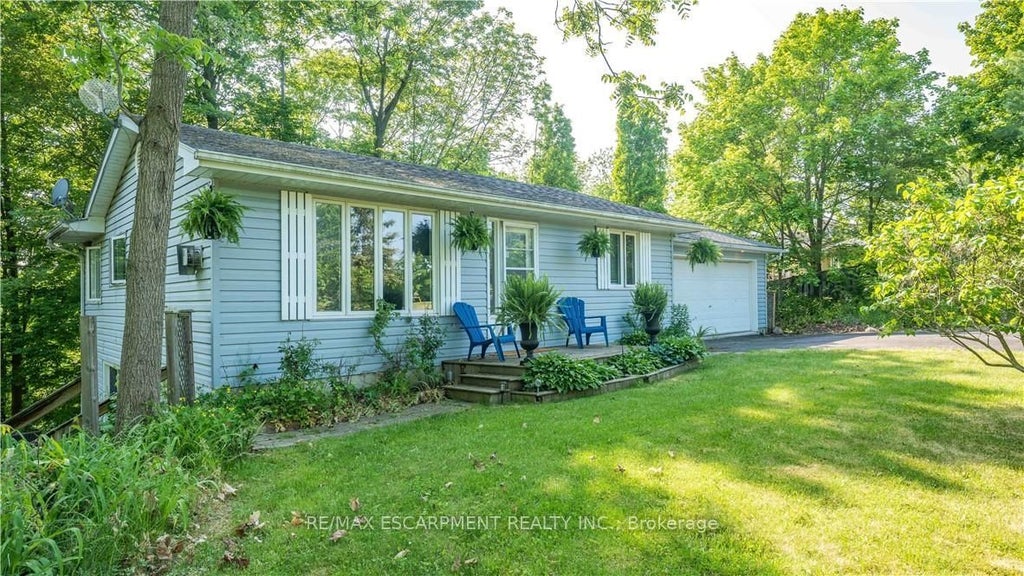 Year round living in the historic hamlet of Port Ryerse. Nestled on almost 1/2 an acre, this property was once 2 separate lots. Just minutes to the beach, this home is perfect for the outdoor enthusiast with fishing, boating & swimming nearby. Enjoy beautiful sunrises and ravine like views from the large eat in kitchen with breakfast bar, ss appliances & new gas range. With over 1700 sq ft of total finished living space, this home is perfect for retirees, first time home buyers or anyone looking to simplify their lifestyle. The main floor features new vinyl flooring throughout. living room with gas fireplace, renovated 4 pc bathroom, master bedroom & second bedroom with walkout to deck. The back deck is perfect for entertaining with access off of the kitchen as well as the 2nd bedroom. The lower level has 2 additional bedrooms, laundry room, 3 pc bathroom, large rec room area with gas fireplace & bay window overlooking the property. Sliding glass doors from this level lead out to a patio, firepit and backyard. Double attached garage with access to back deck. Parking in driveway for 4 cars + 2 spots at back of property. New 200 amp electrical panel '21, heat pump 24, ductless air conditioners & remote garage door 23, vinyl flooring '22, 2000 gallon cistern. Heated by 2 gas fireplaces, new heat pump and baseboard heating. Approximately 10 min drive to Port Dover & Simcoe, 15 min drive to Turkey Point & close to wineries and public golf courses. Rare opportunity to join this welcoming community of Port Ryerse.