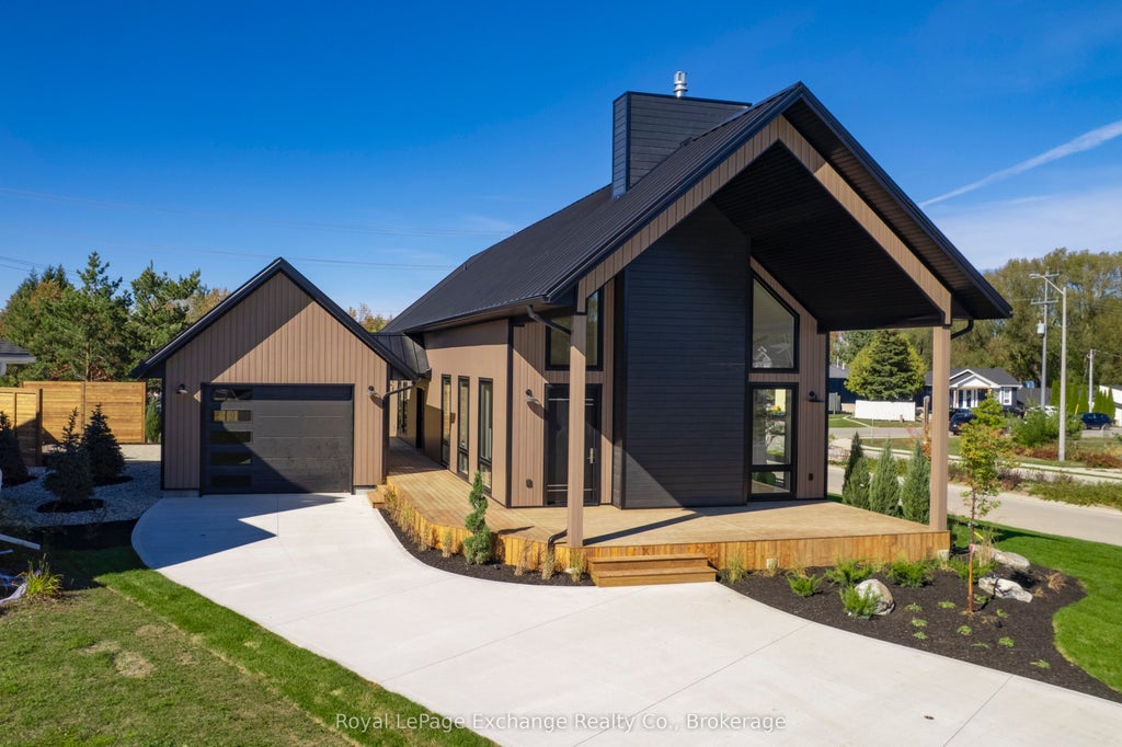 A Modern Coastal Retreat at Southampton LandingThis striking, custom-built home blends coastal charm with contemporary design in one of Saugeen Shores' most desirable communities Southampton Landing. Step inside to soaring vaulted ceilings, oversized windows, and an open-concept main floor drenched in natural light. The designer kitchen is a showstopper! Featuring custom cabinetry, quartz countertops, pot filler, two large islands with seating, and seamless flow into the living area anchored by a sleek linear fireplace. The main floor offers two bedrooms that share a stylish full bath, a convenient powder room, main floor laundry, and a built-in mudroom with custom cabinetry leading to the garage and 4' crawl space for extra storage. The upper-level loft-style primary suite offers a true sanctuary with dramatic architectural windows, warm wood flooring, and a spa-inspired ensuite complete with a soaker tub, walk-in shower, and dual vanity. Every detail has been thoughtfully designed. Outdoors, the steel roof and steel siding provide long-term durability and low maintenance, allowing you to spend more time enjoying life near the lake. A detached garage with covered breezeway adds both style and function, while the manicured landscaping and concrete driveway complete the clean modern aesthetic. Located steps to trails, beaches, and everything Southampton has to offer. This home is a perfect mix of sophistication, comfort, and easy living.