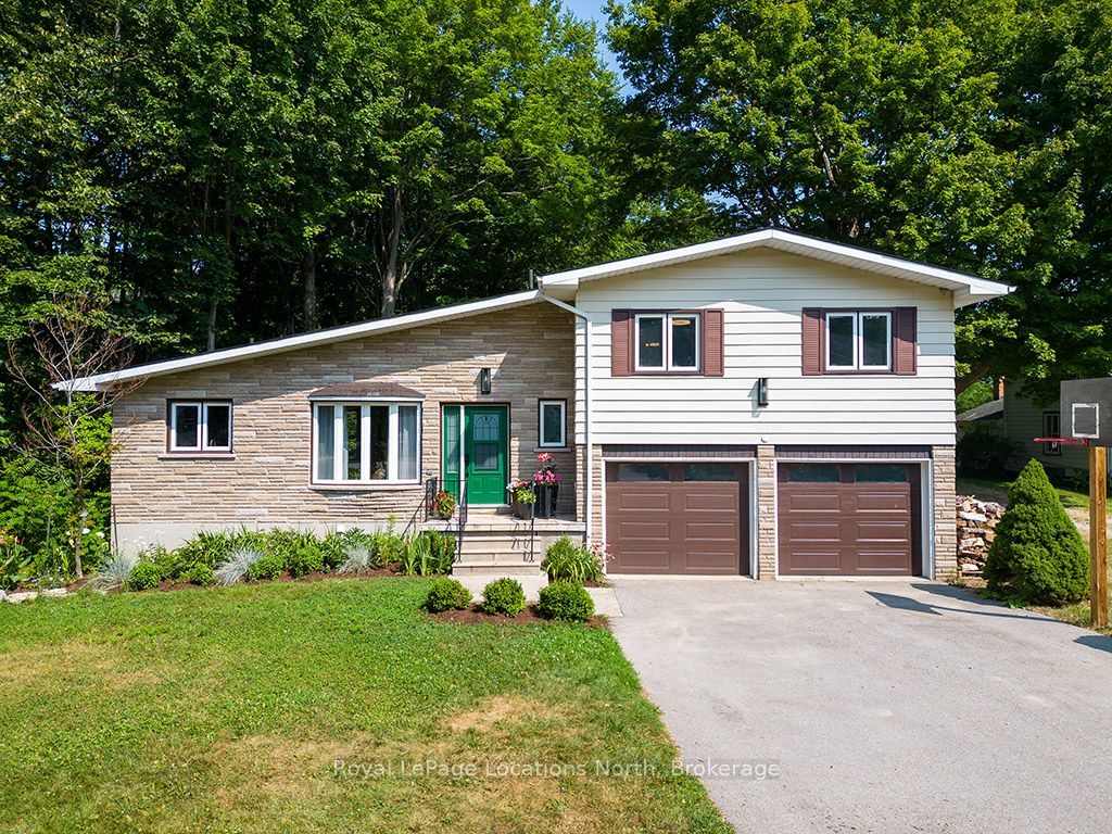 Tucked among the trees on a private ravine lot backing onto the Georgian Trail, this beautifully updated 3-bedroom, 1.5-bath home is located on one of Meaford's most sought-after streets. Enjoy the perfect blend of privacy, nature, and modern comfort - ideal for year-round living or a weekend escape.Inside, enjoy the open-concept layout with vaulted ceiling, features a fully renovated kitchen with premium Bosch appliances, elegant quartzite countertops, and updated flooring throughout. A stunning wood-burning fireplace and custom feature wall anchor the living space, creating a warm and inviting atmosphere.The bright 3 season sunroom offers a peaceful view into the forested ravine - a perfect spot to unwind. Both bathrooms have been tastefully updated, and the home's functionality shines with an attached double car garage and ample parking for guests or recreational vehicles.With easy access to the Georgian Trail and just minutes to Meaford's waterfront, shops, and dining, this is a rare opportunity to own a turn-key home in a prime location.