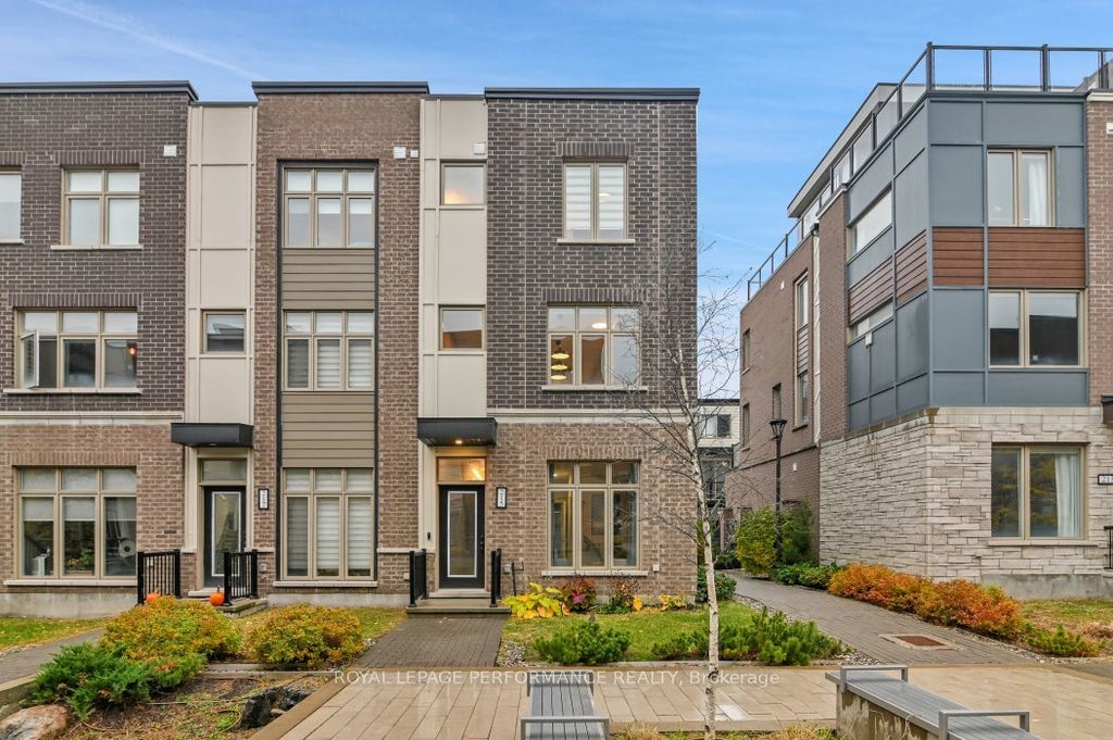 Discover this beautifully maintained end-unit townhome with virtually zero carbon footprint nestled in the master-planned community of Wateridge Village. The property features an upgraded kitchen with sleek stainless steel appliances, complemented by a stylish eat-in centre island that offers additional counter space and a welcoming area for casual dining. The open layout seamlessly connects the kitchen to the living and dining areas, perfect for entertaining friends and family. Step outside onto the west-facing deck, where you can soak in afternoon sun or dine al fresco. Upstairs, the primary bedroom boasts a bright, airy feel with ample closet space, and the additional 2 bedrooms are equally well-sized, perfect for children, roommates, or a home office. Enjoy cozy evenings in the ground-floor family room, featuring an elegant electric fireplace that creates a warm and inviting atmosphere during colder months. The property's 1.5 car garage is equipped with an electric vehicle charger and lots of capacity for organization. Additional interior storage and convenience are offered with ample closet space and a functional floor plan. Perfectly situated, within minutes to downtown and walkable to the Ottawa River, this exceptional townhome offers modern design, thoughtful upgrades, and unbeatable convenience. Steps from scenic parks and walking trails, it's also minutes to shopping and dining in Beechwood Village, and close to Ottawa's top private schools. Combining comfort and style with eco-conscious flair, this home provides an outstanding opportunity to enjoy a vibrant and connected lifestyle in one of Ottawa's most central, newly developed neighbourhoods.